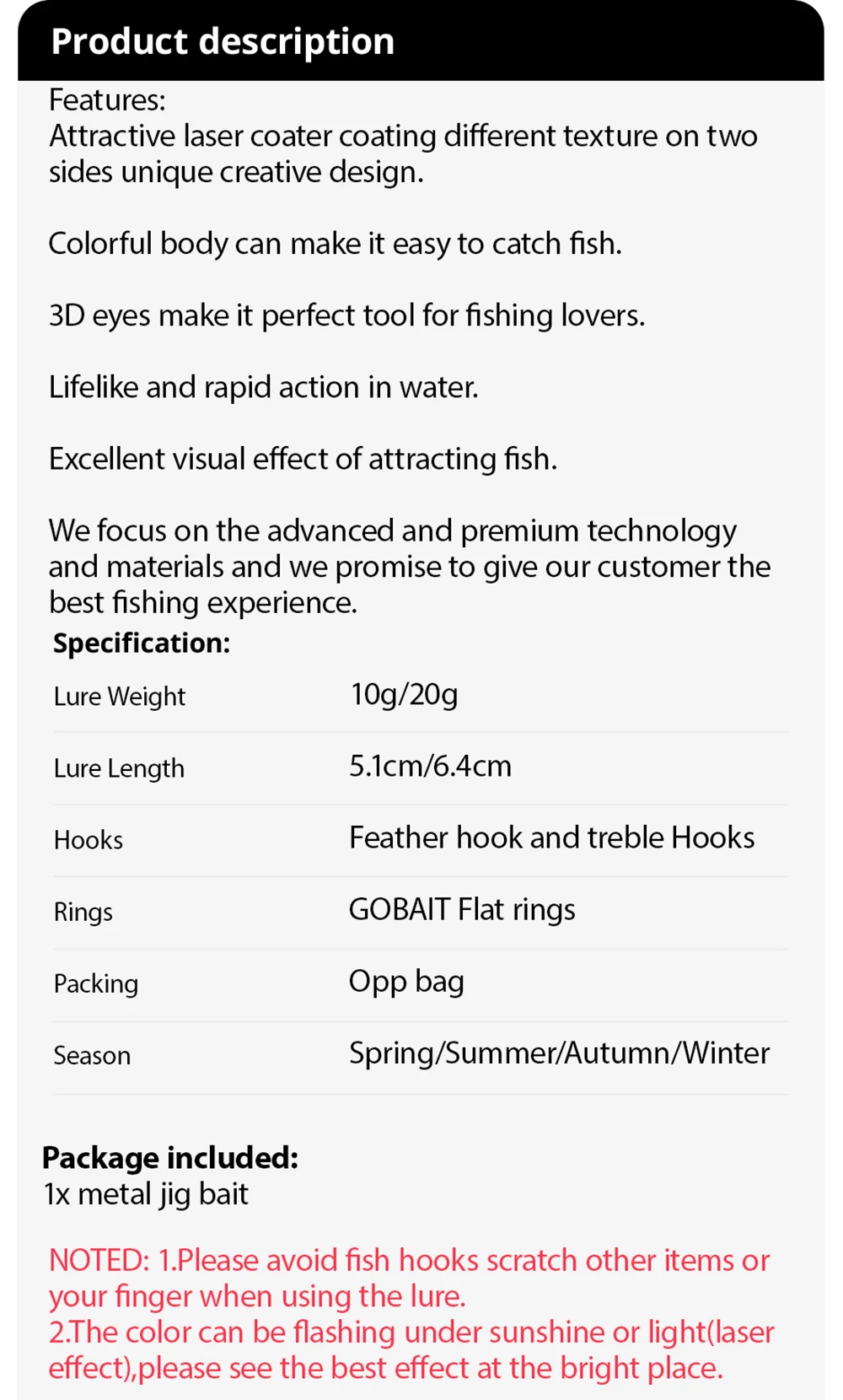 2. ganchos Srong agudos, que están armados con ganchos GOBAIT, potencia más fuerte, durable, agua de mar de agua dulce universal.