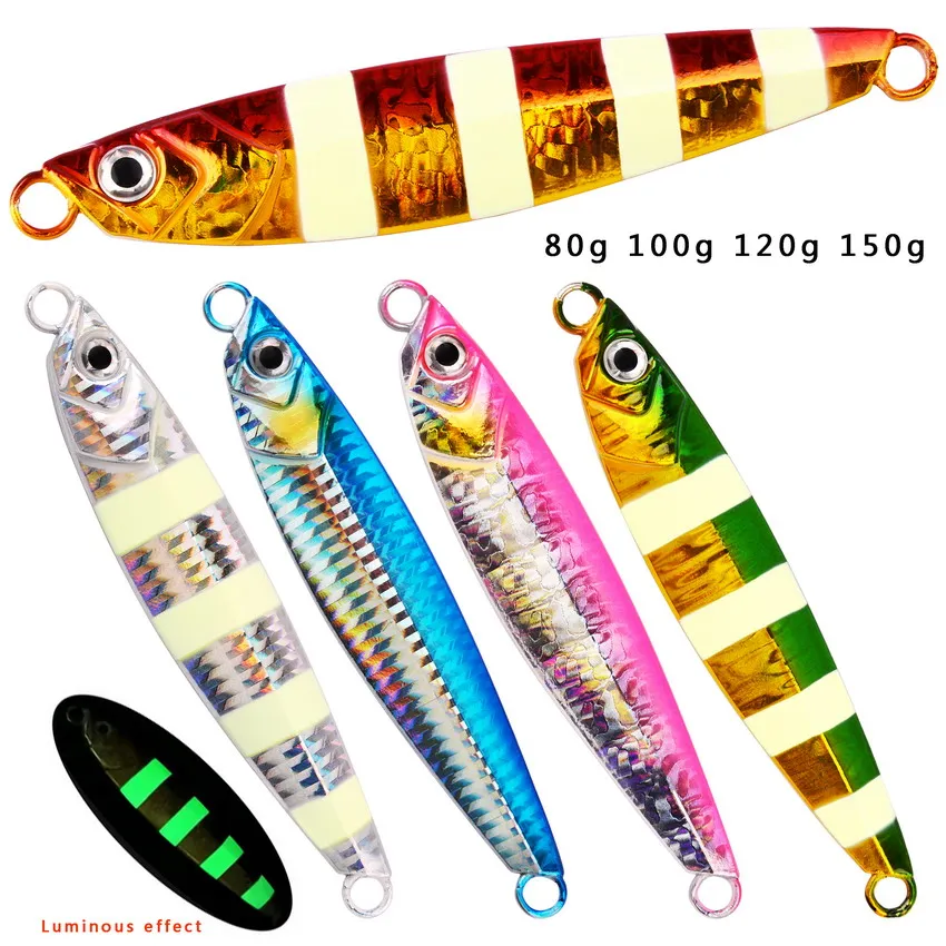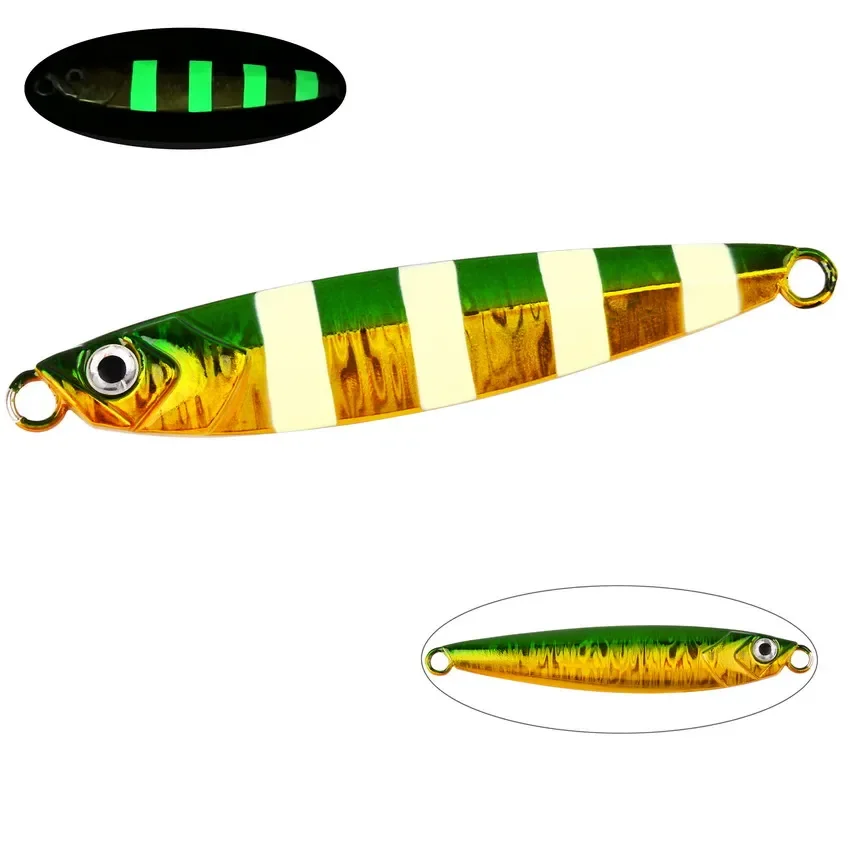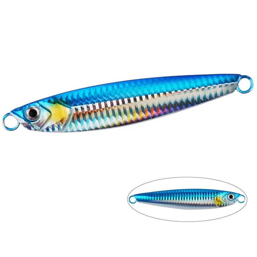 Señuelo de Pesca de plantilla de Metal, anzuelo de fundición a tierra, Swimbait, cebo Artificial, cubierta láser, accesorios de Pesca de Lucio de mar, aparejos giratorios, 1 piezas