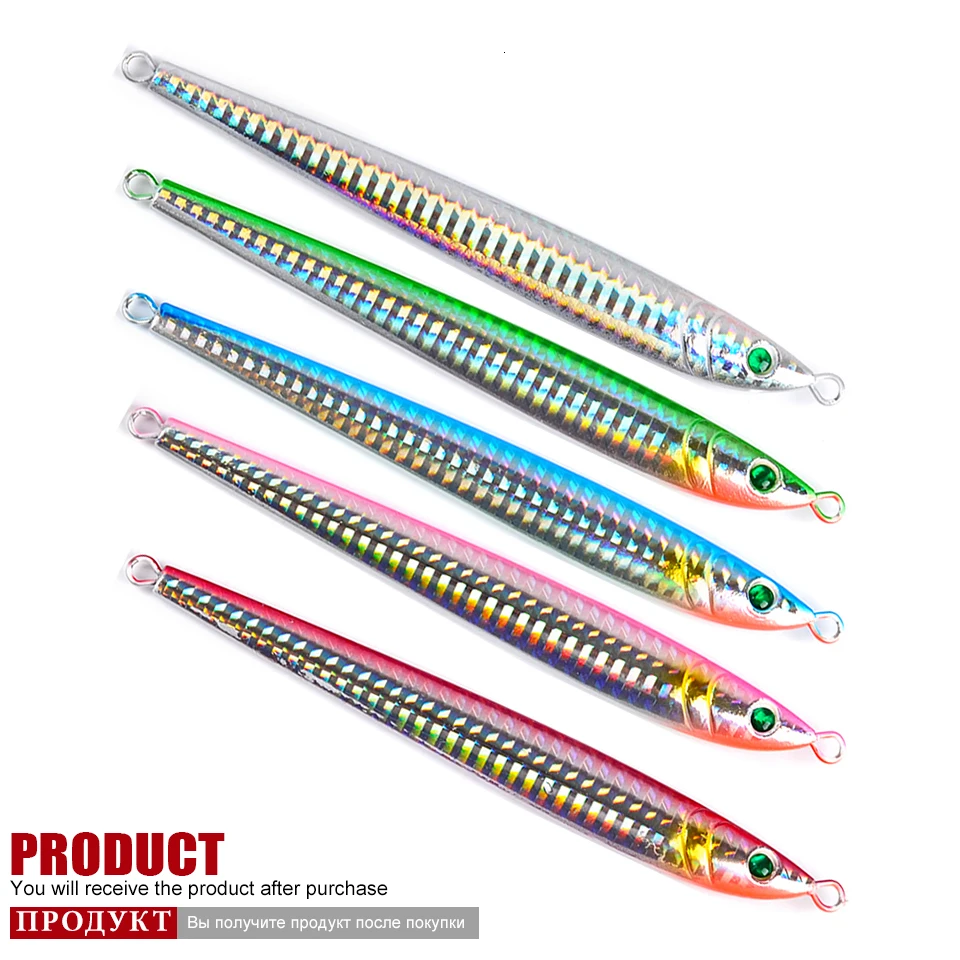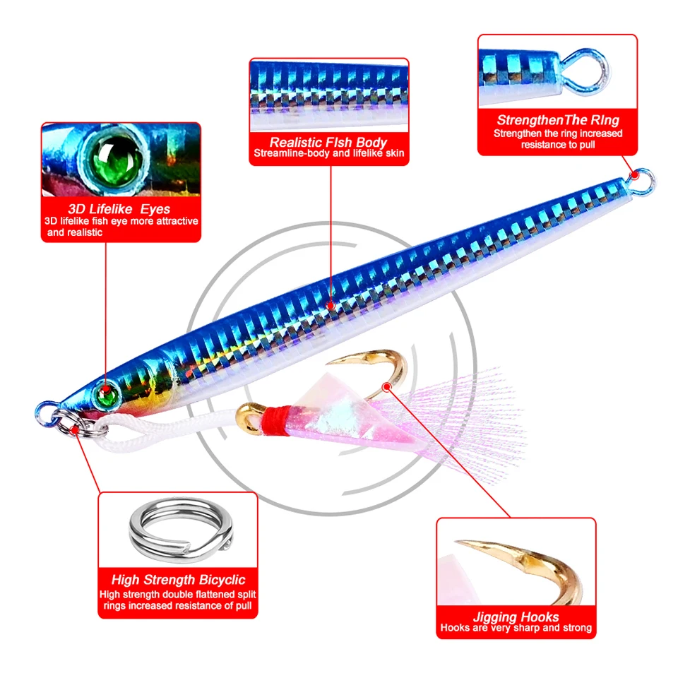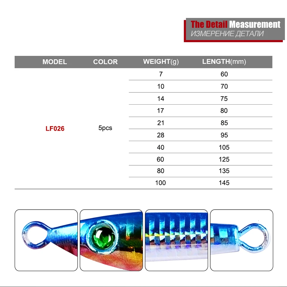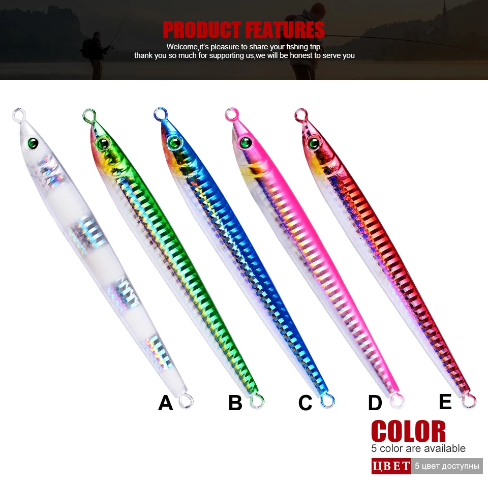 Detalles del producto: Marca: OUGAFISH Modelo de señuelo: Jig Tipo de señuelo: señuelo de pesca duro Peso del señuelo: 21-100g Longitud del señuelo: 85-145mm Profundidad de buceo: Flotabilidad: Ganchos de hundimiento: equipado con piezas Anzuelos anticorrosión: Anillos de Ojos de pez 3D: Colores individuales bicíclicos: 5 colores