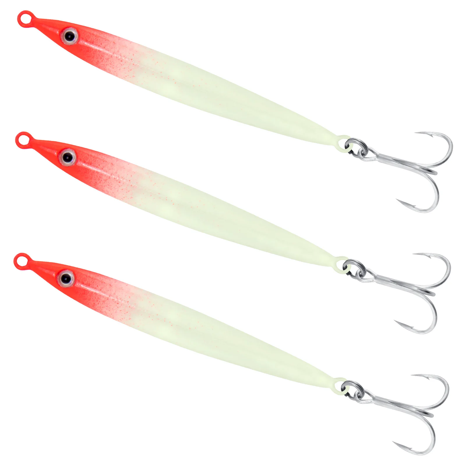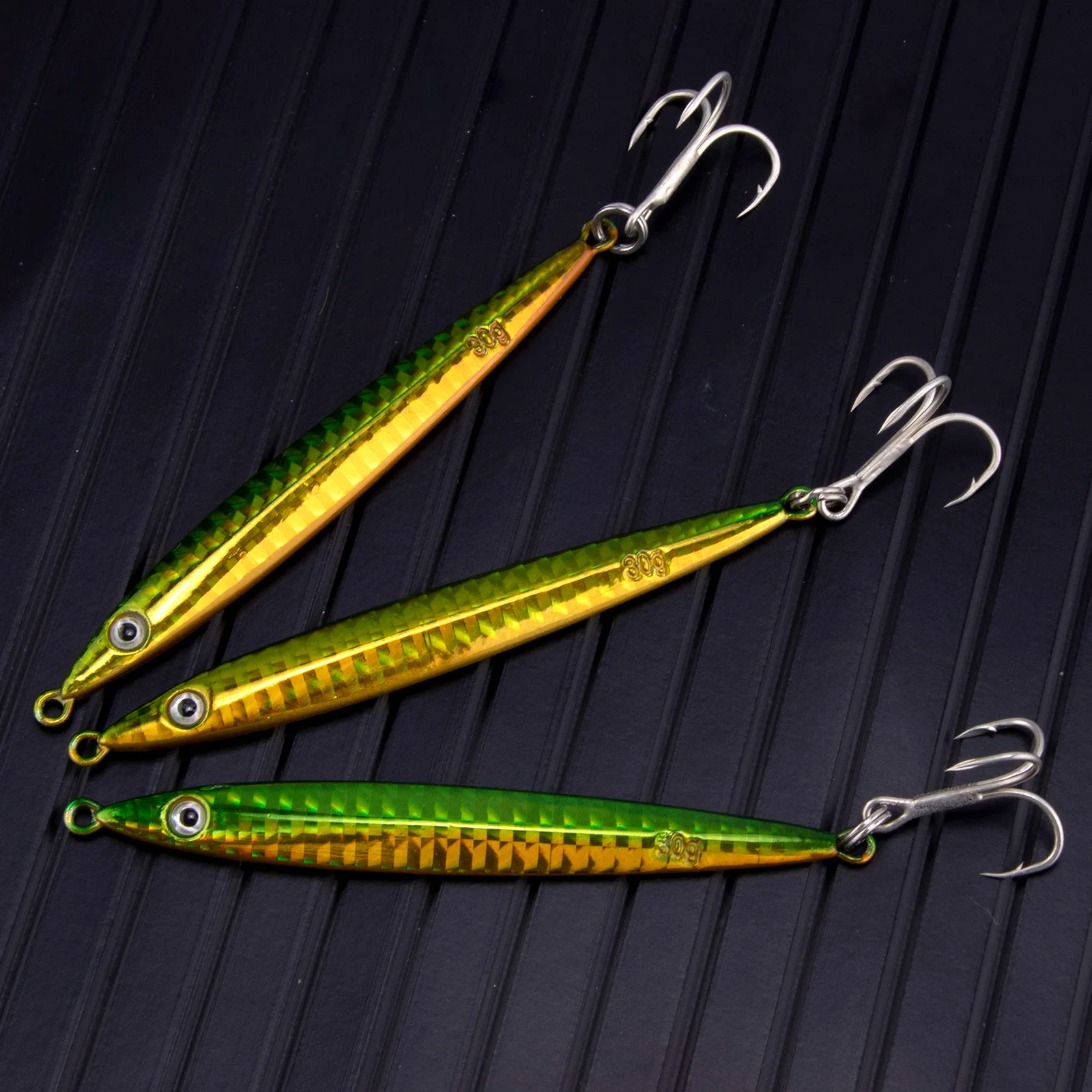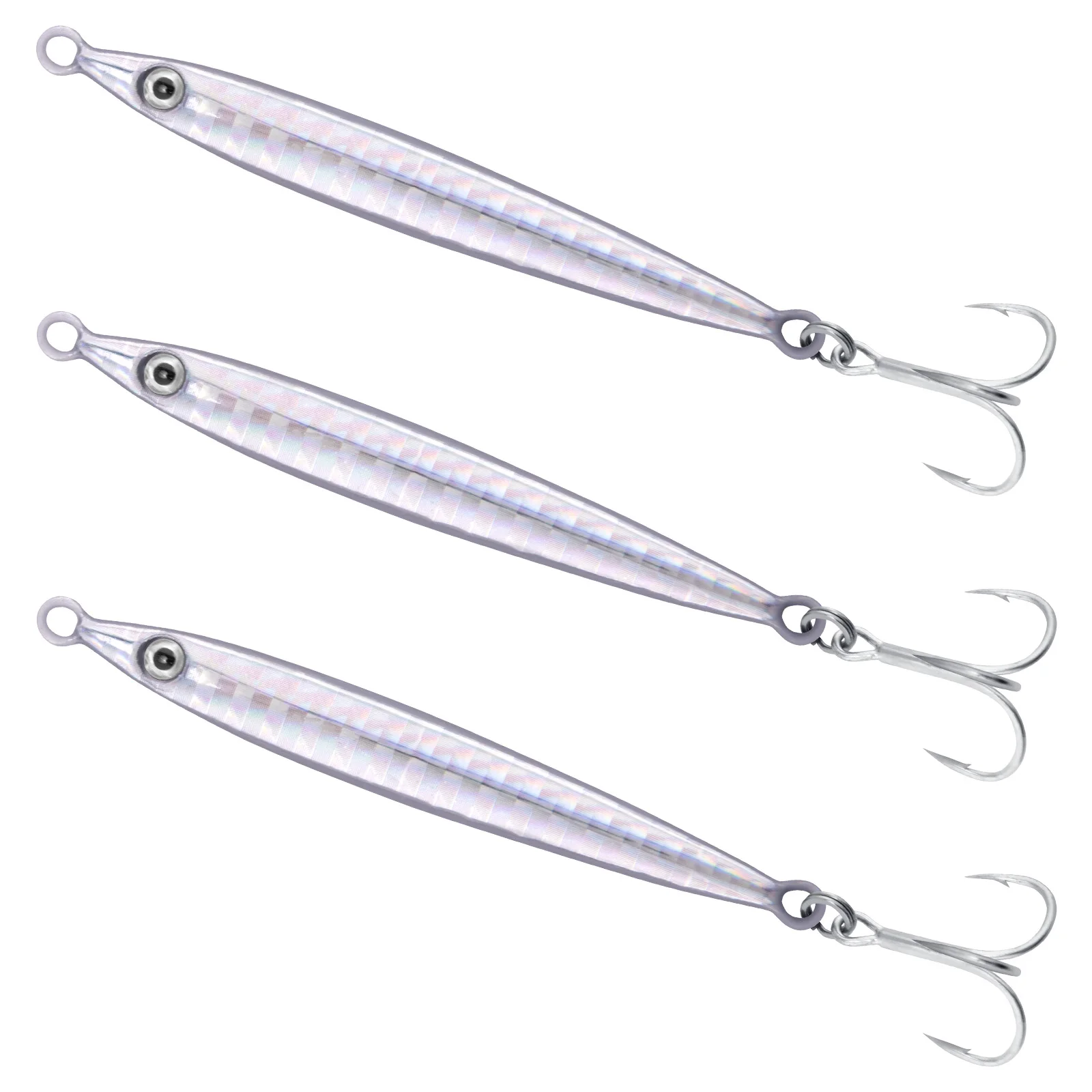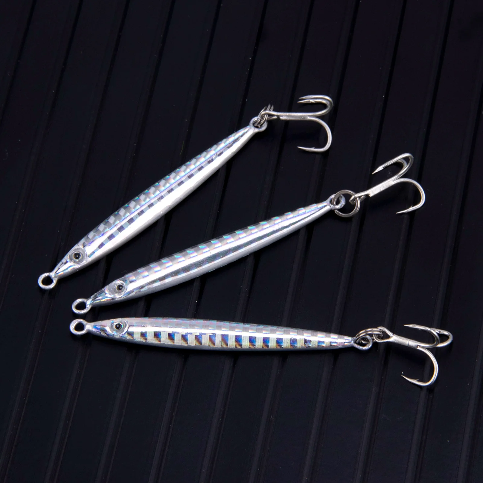 The metal fishing lure features 3D simulated eyes that create a lifelike appearance in the water, increasing the chances of attracting fish to attack.