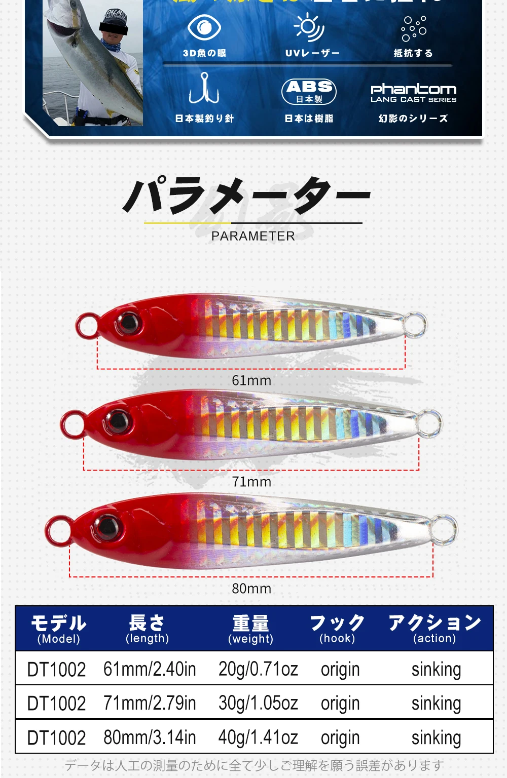 D1 Metal Jig Fishing Lure Shore Casting Baits 61mm/20g 71mm/30g Sinking Hard Bait Jigging Spoon Fish Tackle For Sea Bass DT1002