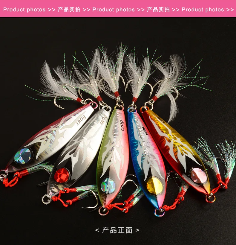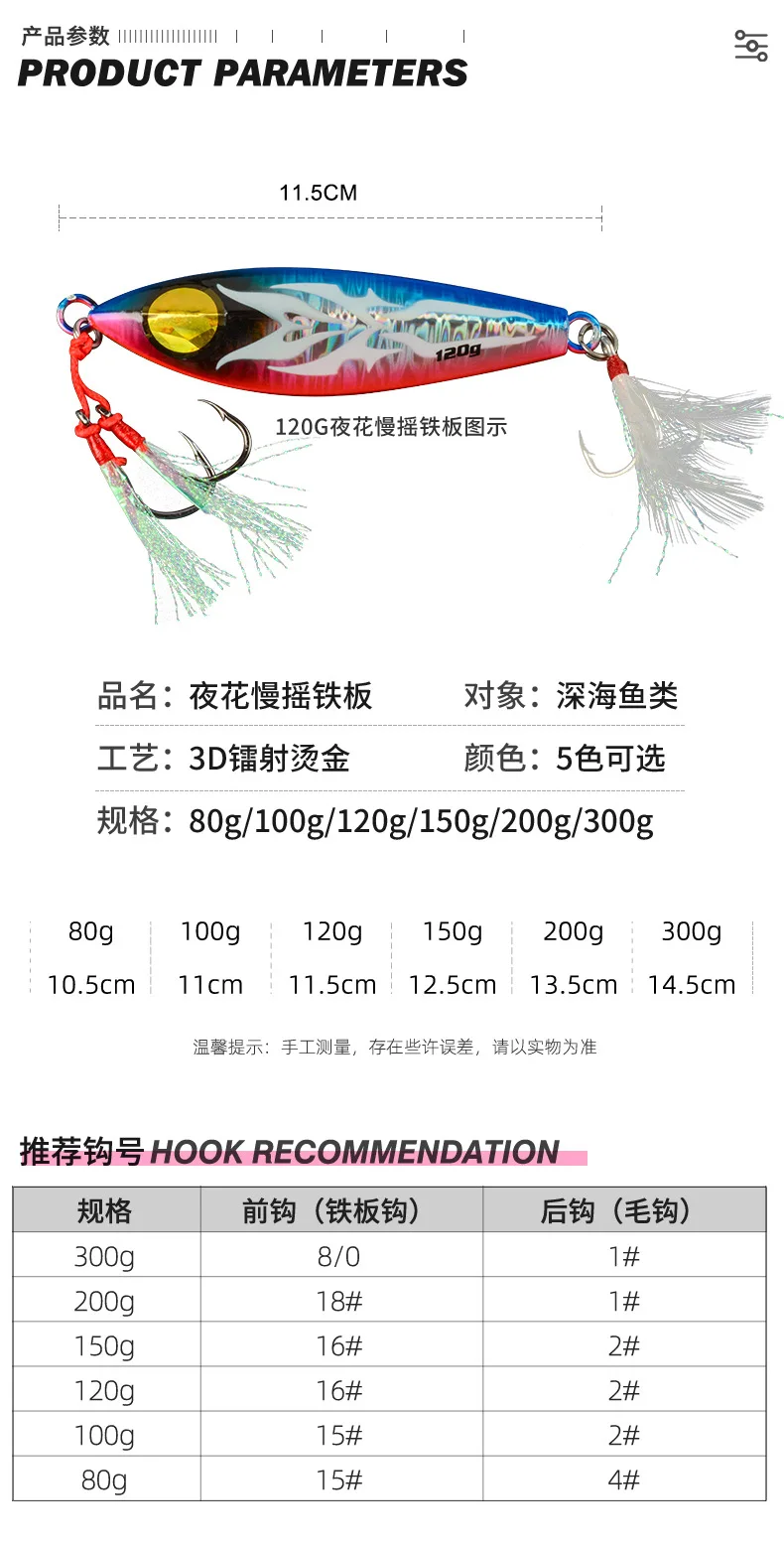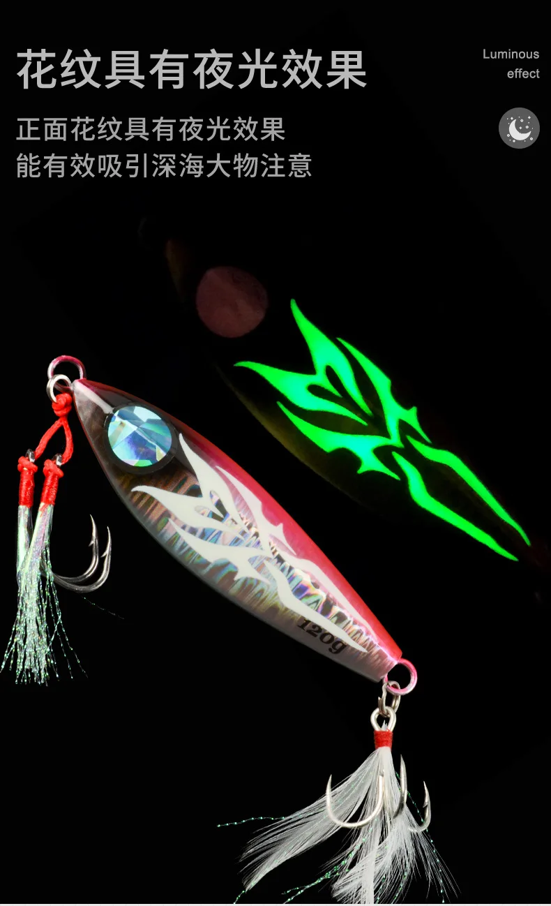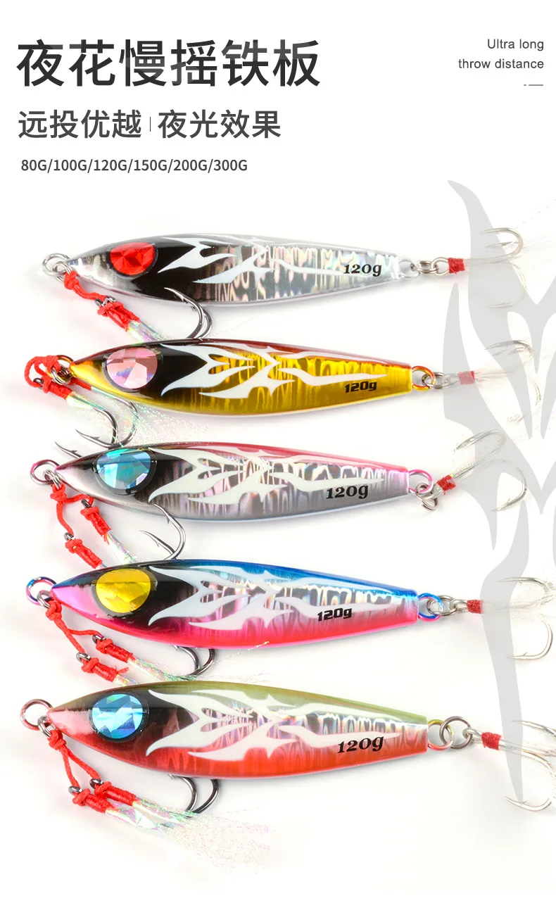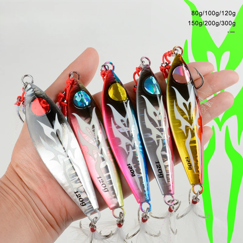 Señuelo de pesca con plantilla de Metal luminoso, 100g, 150g, 200g, 300g, sin orilla, plantilla de paso lento, cuchara de Jigging Vertical súper dura, aparejos de pesca