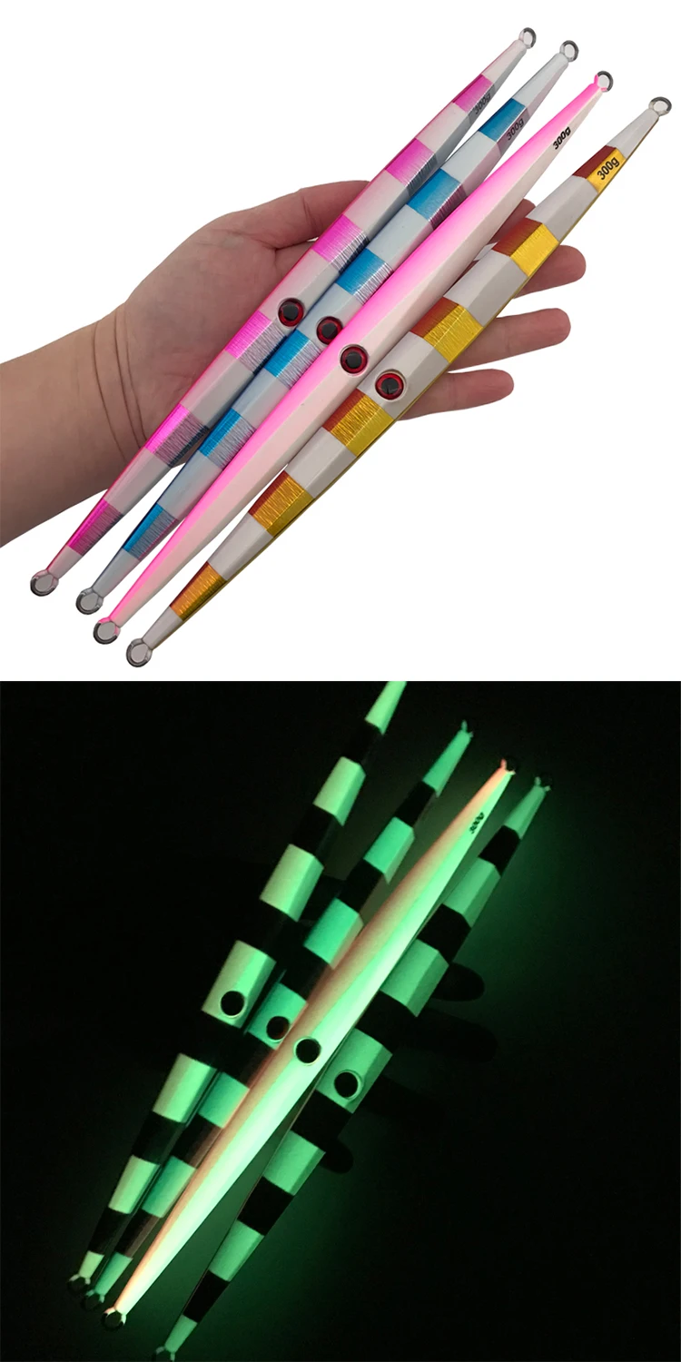 Señuelo de pesca con plantilla de Metal, señuelo de pesca de peso 250g 300g, aparejos de pesca de lubina dura, trucha, Jigging, señuelo de agua salada, 4 unids/lote