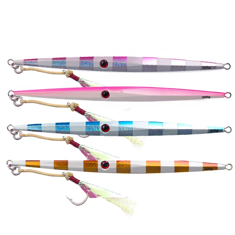 Señuelo de pesca con plantilla de Metal, señuelo de pesca de peso 250g 300g, aparejos de pesca de lubina dura, trucha, Jigging, señuelo de agua salada, 4 unids/lote