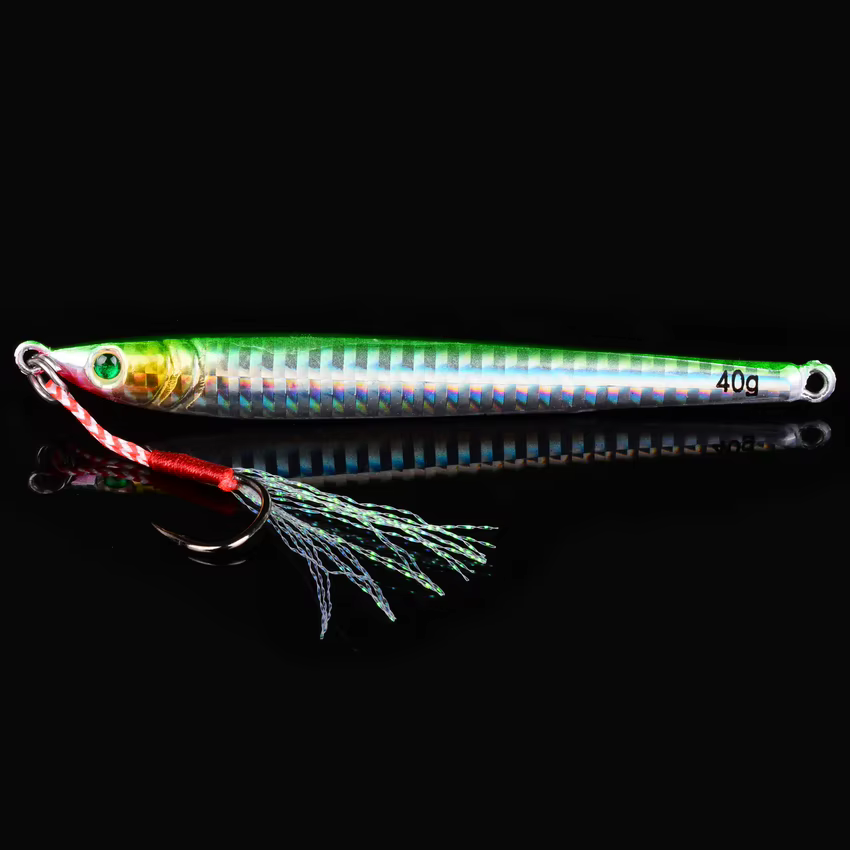 Detalles del producto: Marca: nuevo Modelo de señuelo: plantilla Tipo de señuelo: señuelo de pesca duro Señuelo Peso: 7G/10G/14G/17G/21G/28G/40G Atraer Longitud: 62MM/7MM/76MM/81MM/87MM/96MM/108MM Profundidad de buceo: Flotabilidad: hundimiento Ganchos: equipados con piezas de ganchos anticorrosión Ojos: ojos de pez en 3D Anillos: bicíclico único Colores: 5 colores