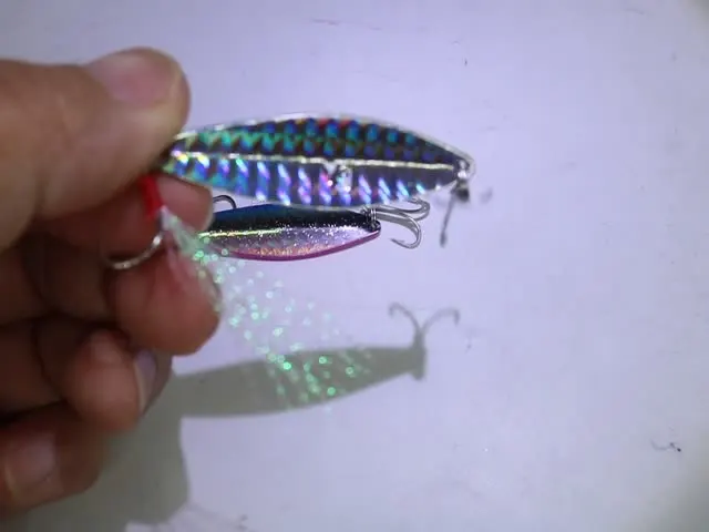 Señuelo de pesca, plantillas láser, plantillas de Metal fundido largo, centelleo, Jigbait Artificial, señuelos tipo cuchara, Culter Bass Mandarin, cebos duros, 1 pieza en oferta