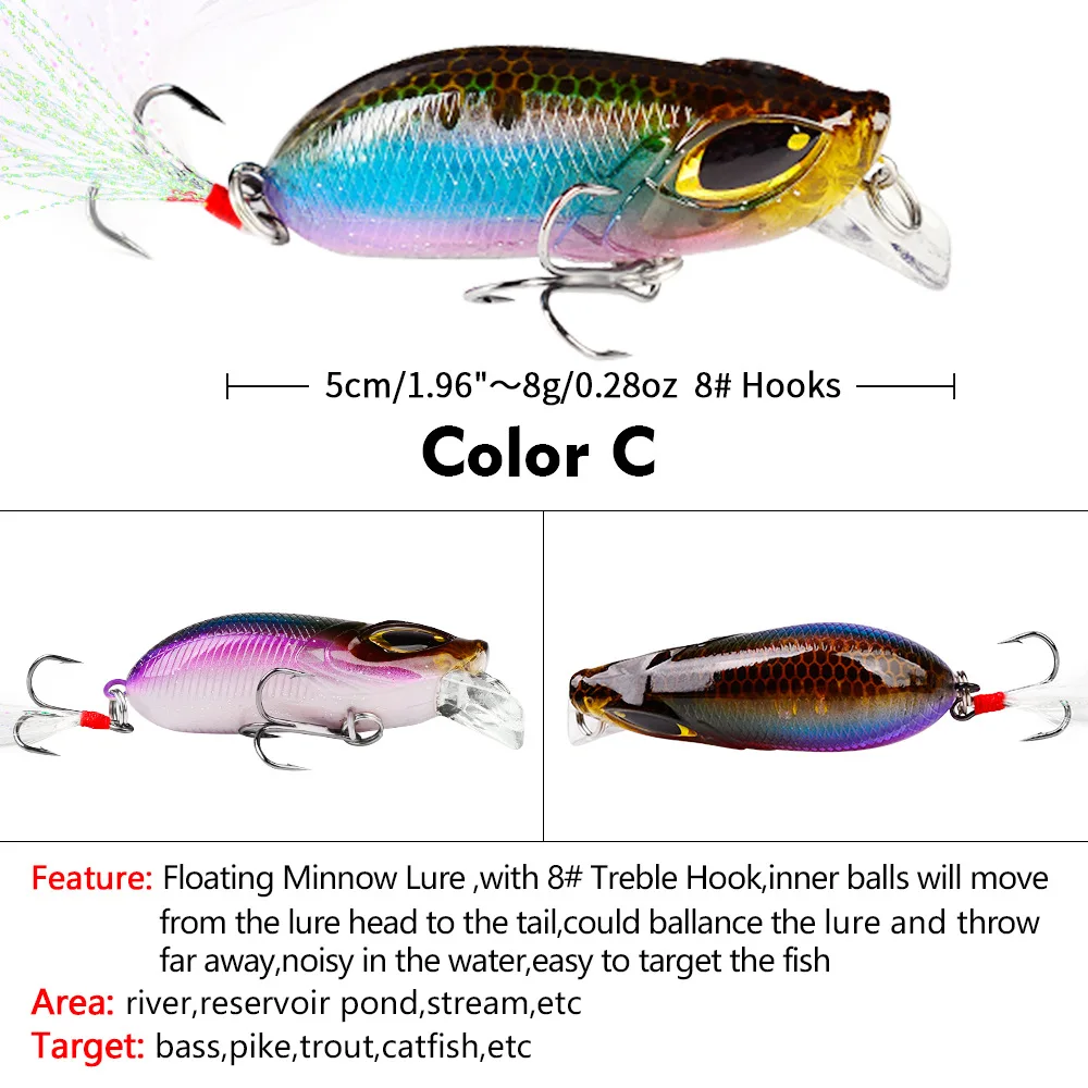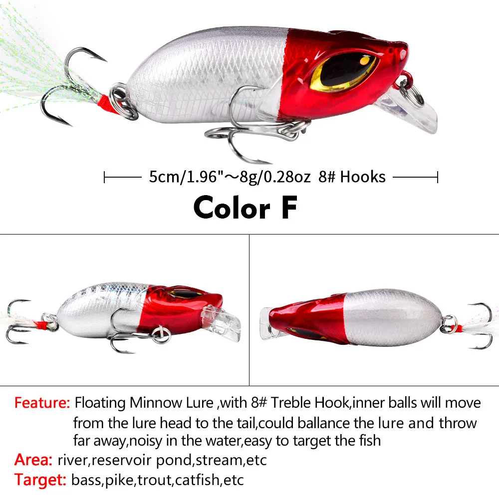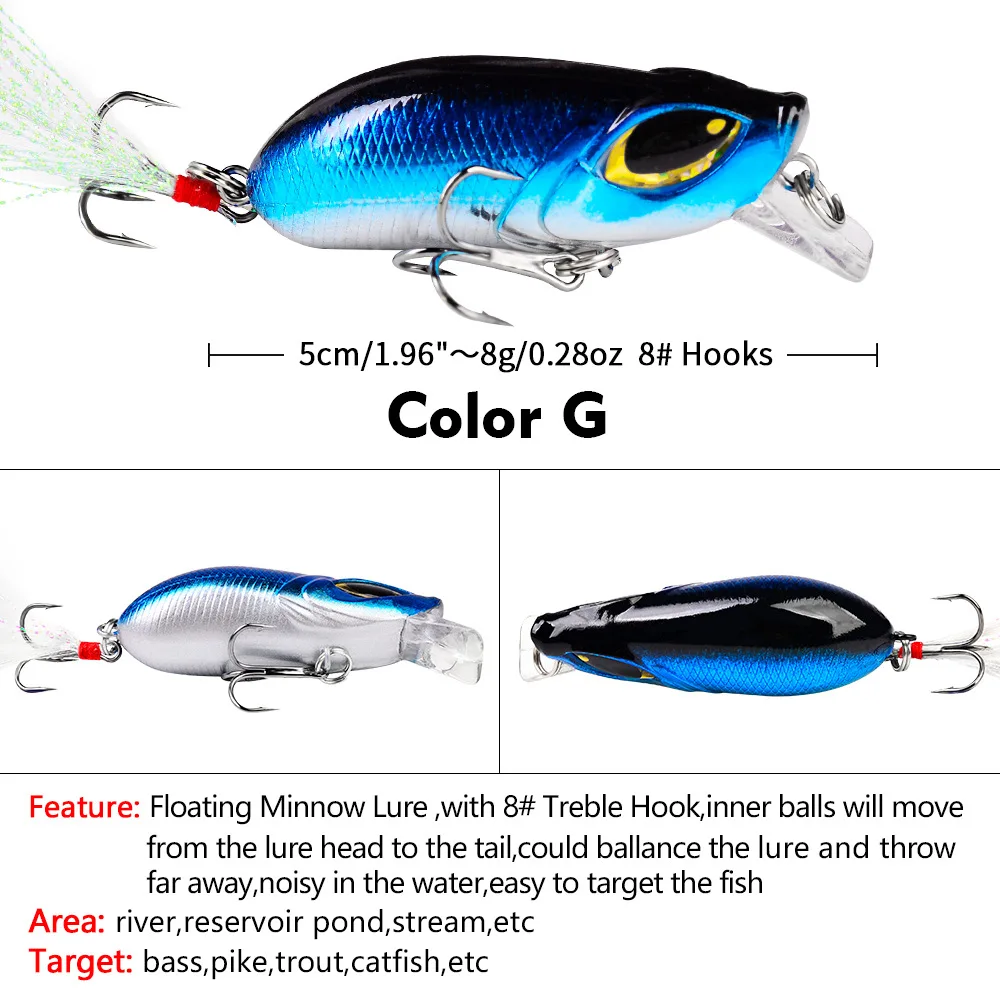 Señuelo de Pesca de plástico, cebo duro Artificial con ojos 3D, Wobbler para Lucio, Crankbaits, Pesca de curricán de mar, 5cm, 8g, 1 pieza