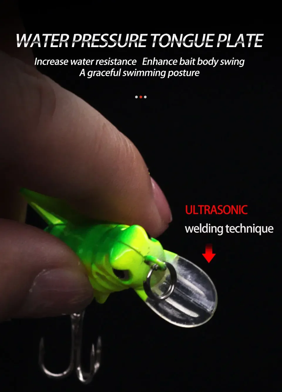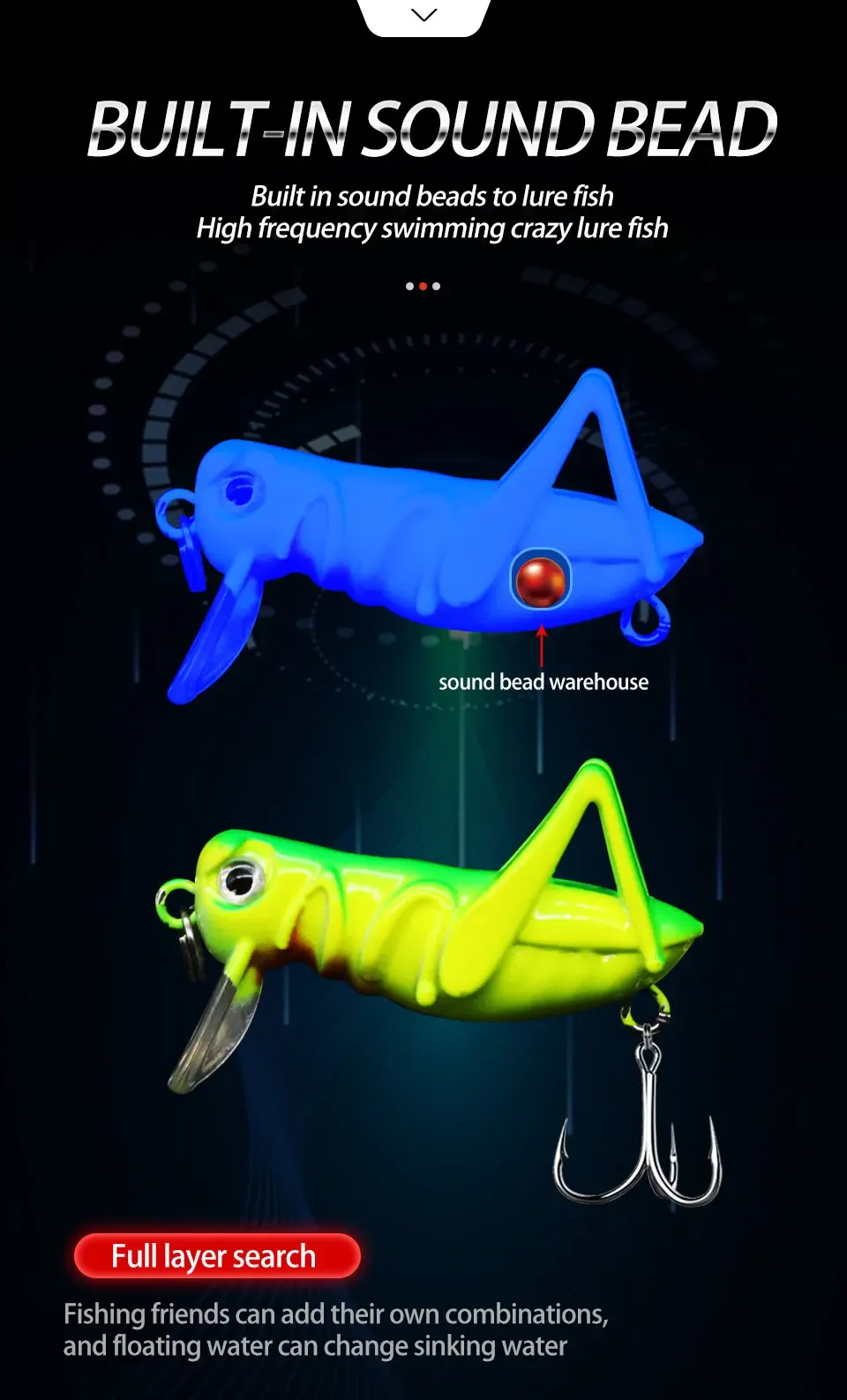 1 # Diseño de forma de saltamontes realista, color brillante y ojo 3D para atraer peces grandes.