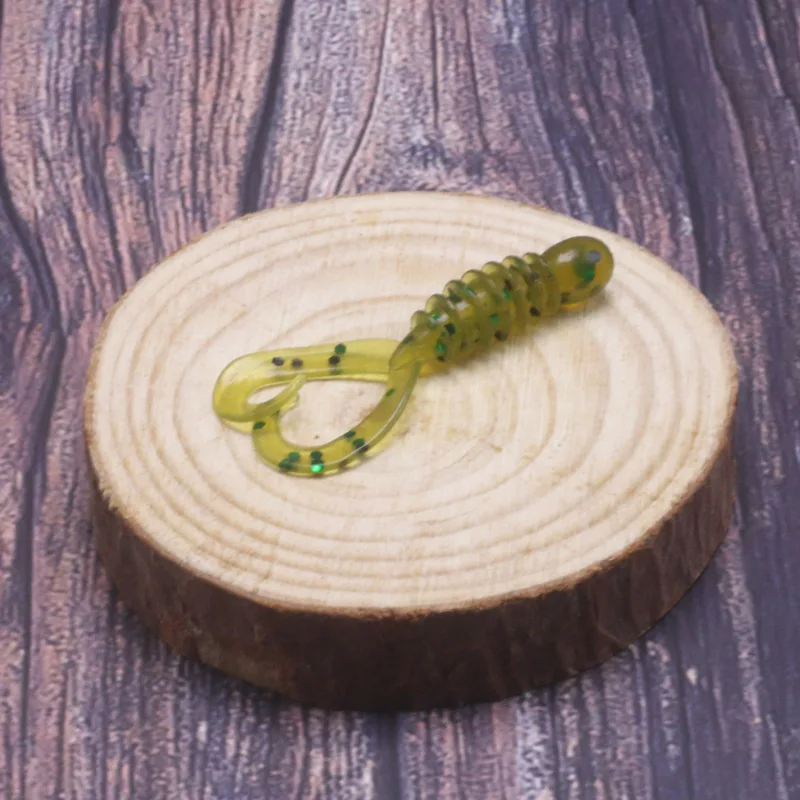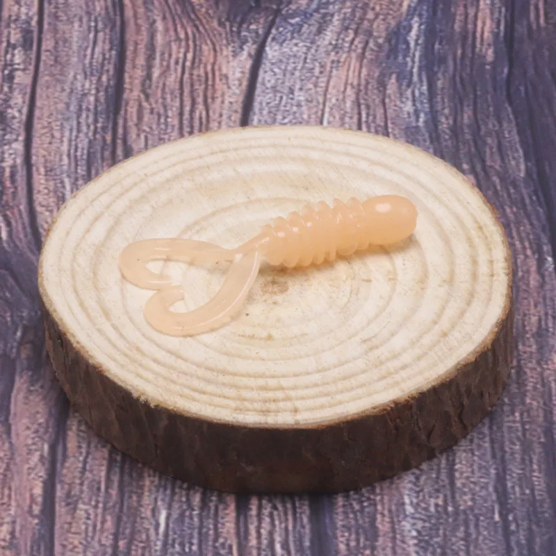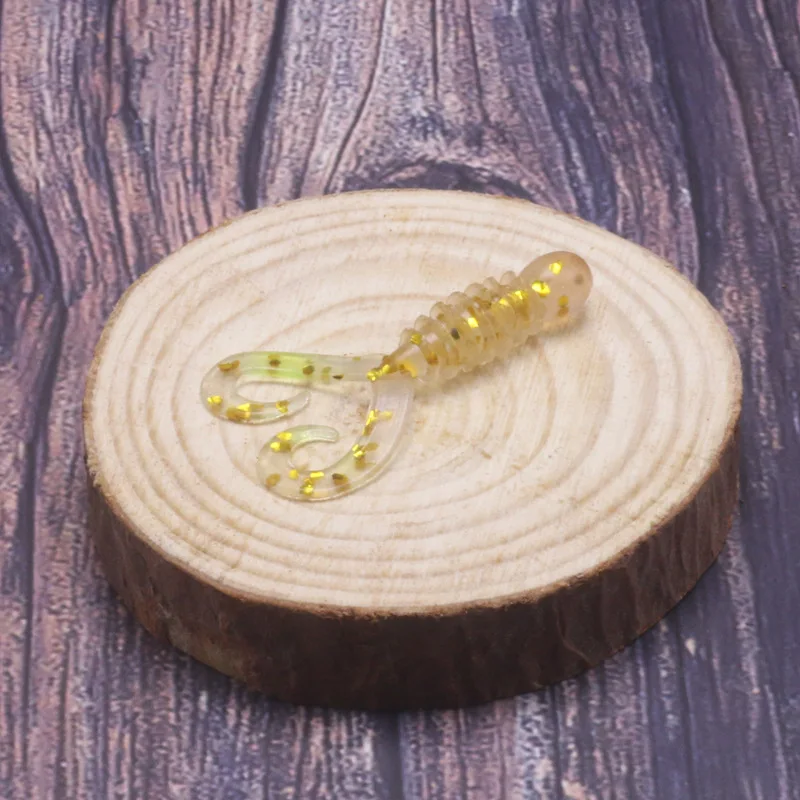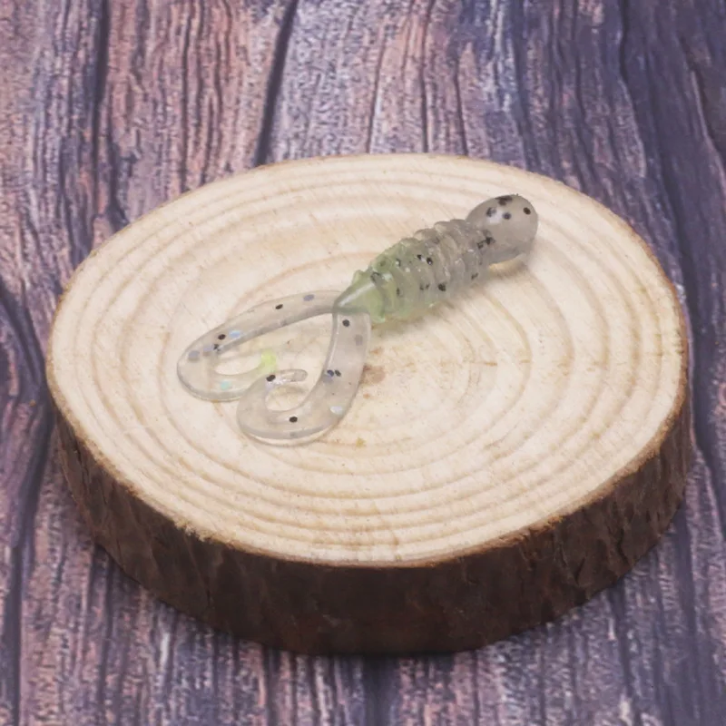 Este Twin Tail Grub es un cebo de silicona suave de primera calidad. Los anillos en espiral cubren su cuerpo de plástico ultrasuave. Con un sabor impregnado de sal pesada y acción realista, esta mini larva le ayudará a cosechar enormes.