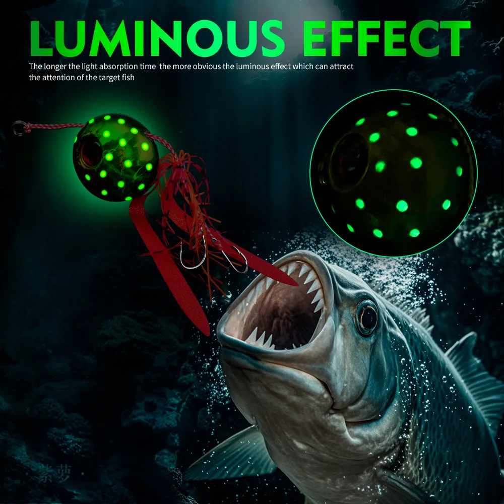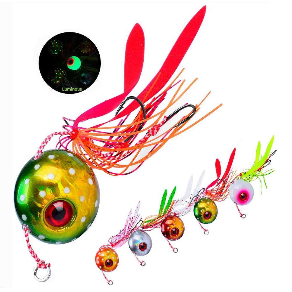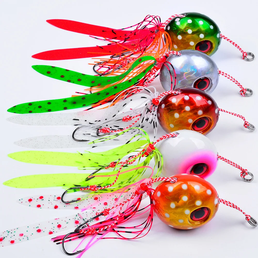Señuelo de pesca de plomo de hierro brillante, 40/60/80g, cebo de pesca de mar de agua salada para pulpo rojo, cabeza de plomo, Jigging lento, anzuelos dobles de aguas profundas