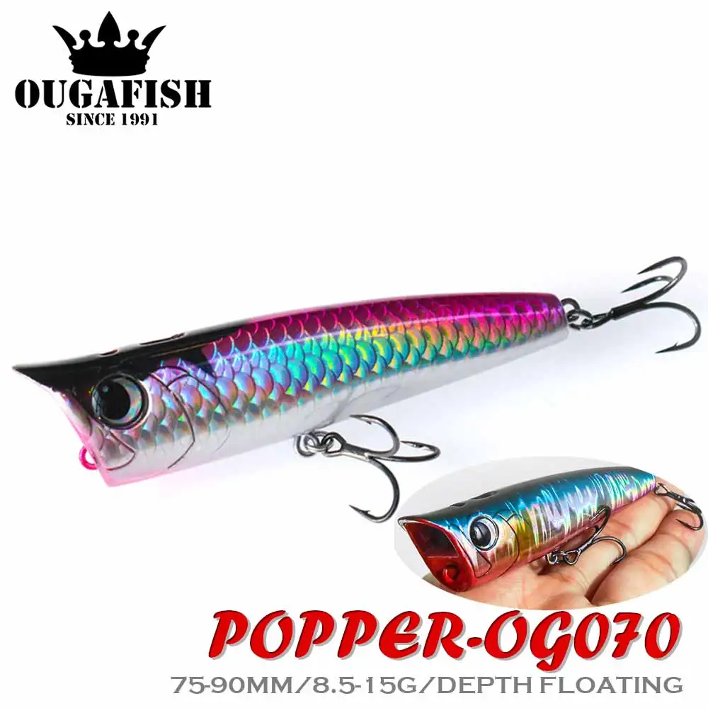 1 señuelo de pesca Popper de superficie, 90mm, 15g, Burbuja flotante, accesorios de pesca, pececillo negro, Leurre Wobblers, cebo duro Artificial