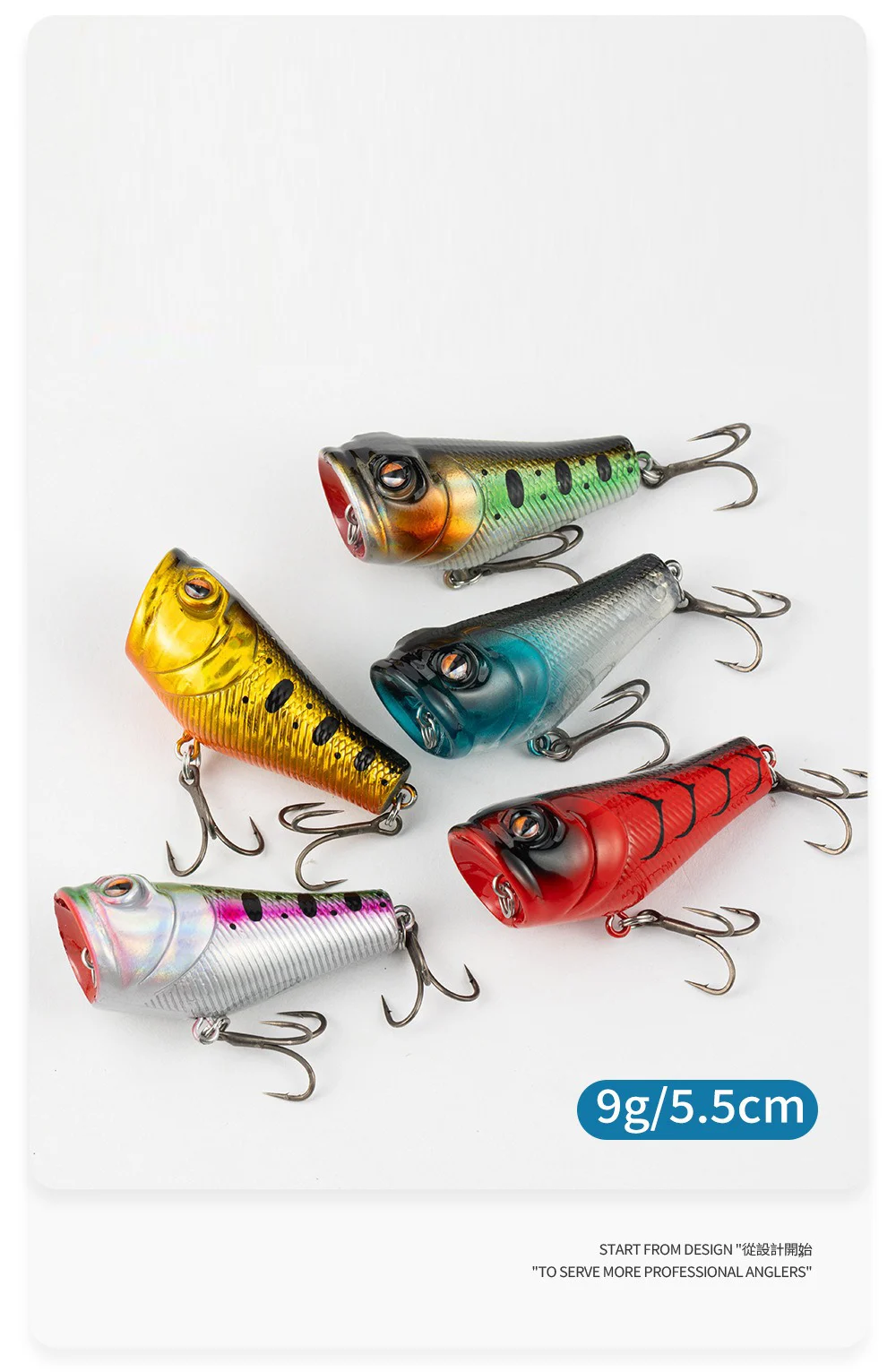 Señuelo de pesca Popper, 5,5 cm/9g, cebo duro Artificial Topwater Bass, trucha, Lucio, Wobbler, aparejos de pesca con 2 anzuelos triples, 1 ud.