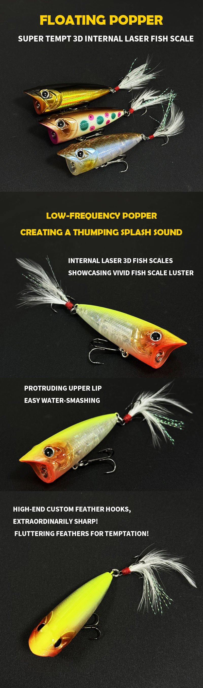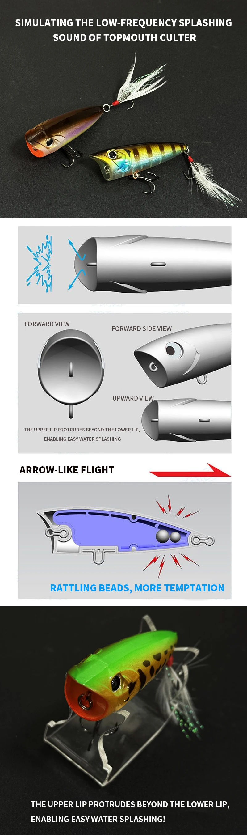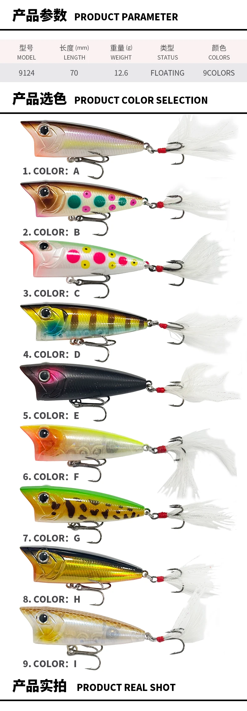 Señuelo de pesca Popper 70F RIPPLE, cebo duro Topwater de 70mm y 12,6g para Lucio, cebo flotante de superficie oscilante de fundición larga