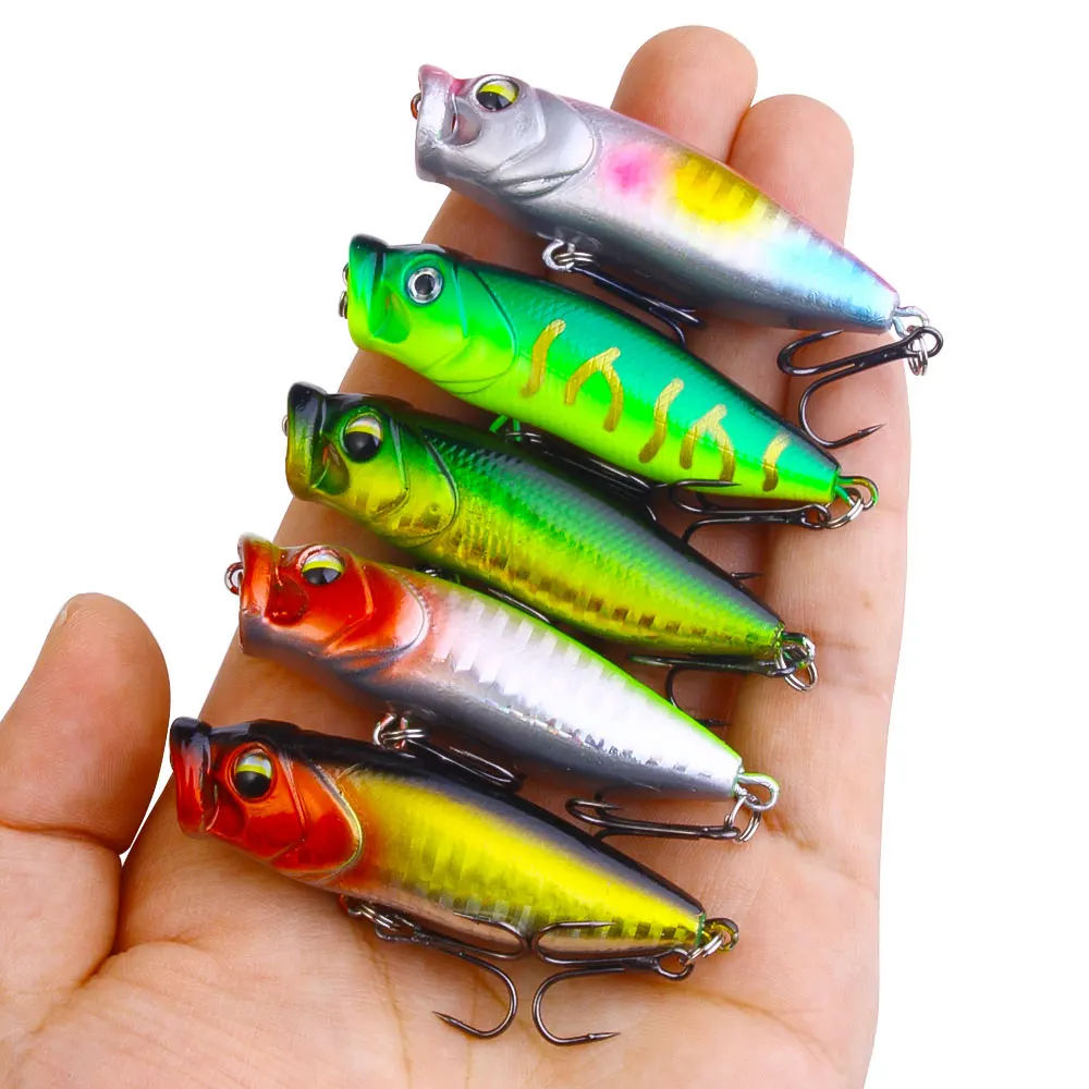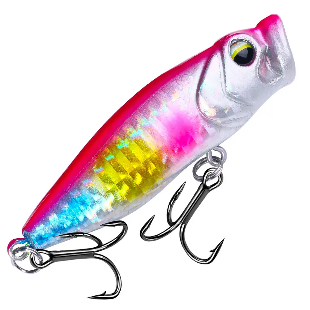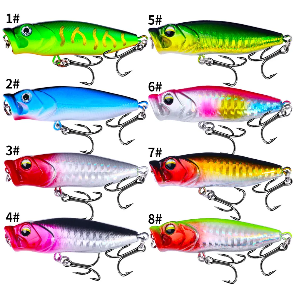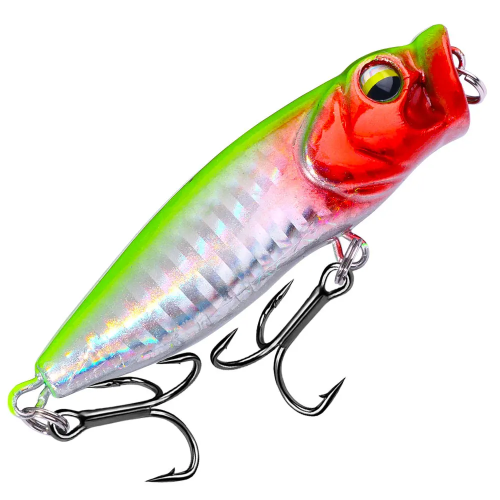 Señuelo de pesca Popper, 7cm, 8g, cebo duro Artificial, Topwater, lubina, trucha, Lucio, aparejos de pesca Wobbler con 2 anzuelos triples, 1 ud.