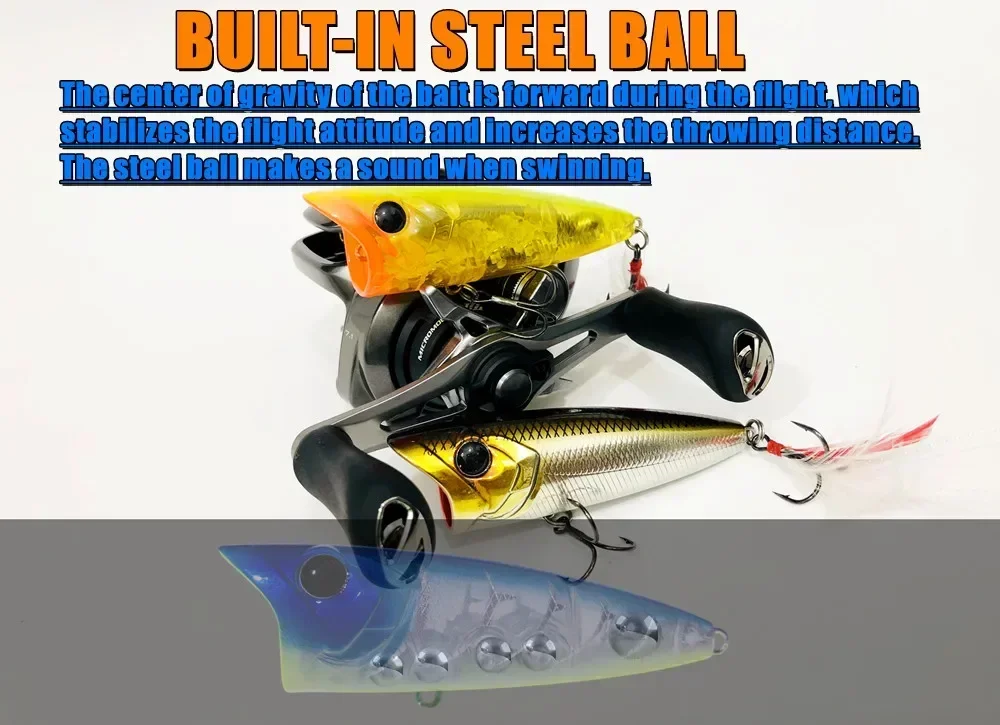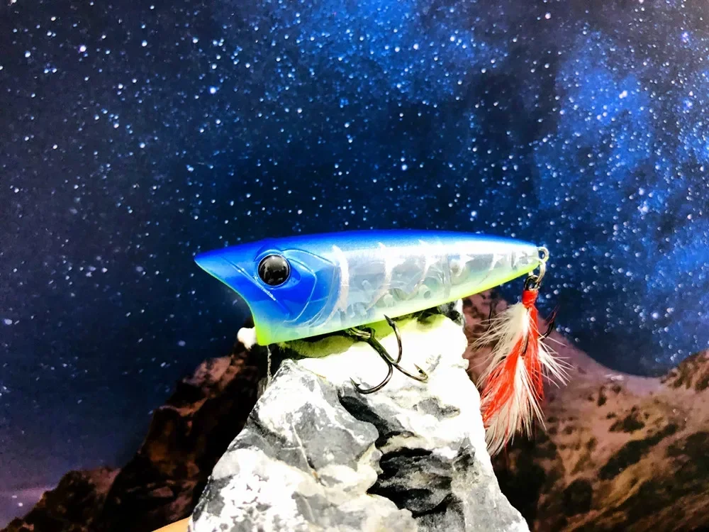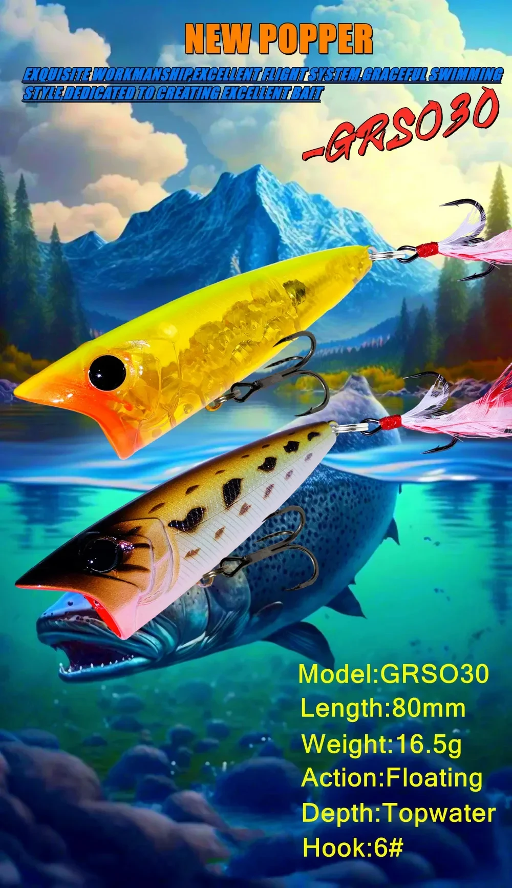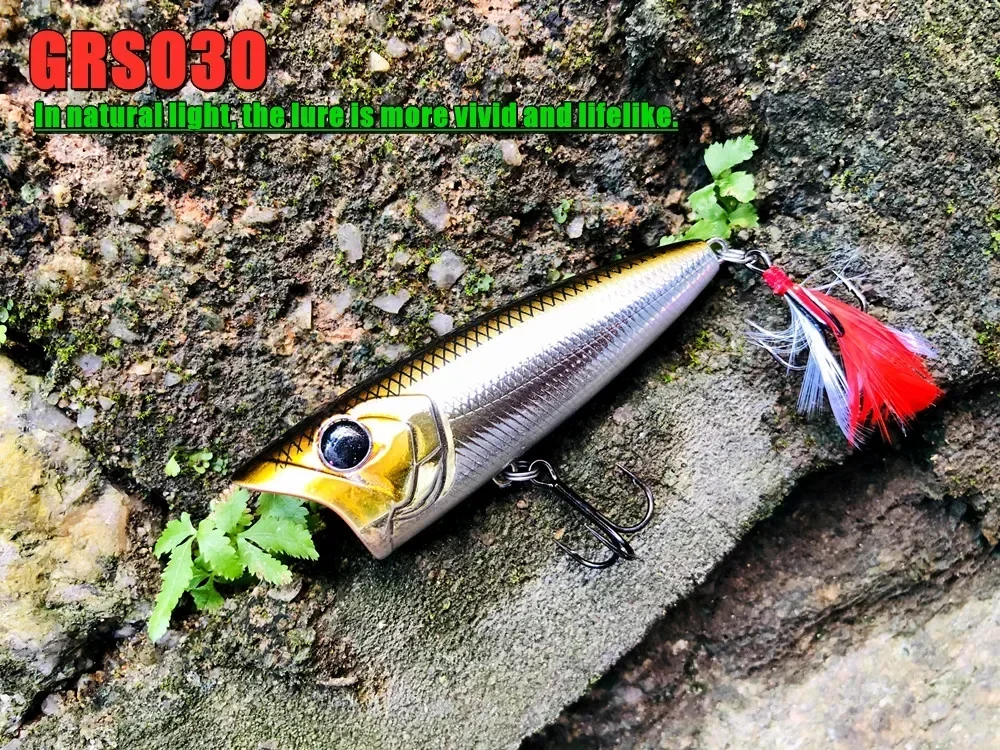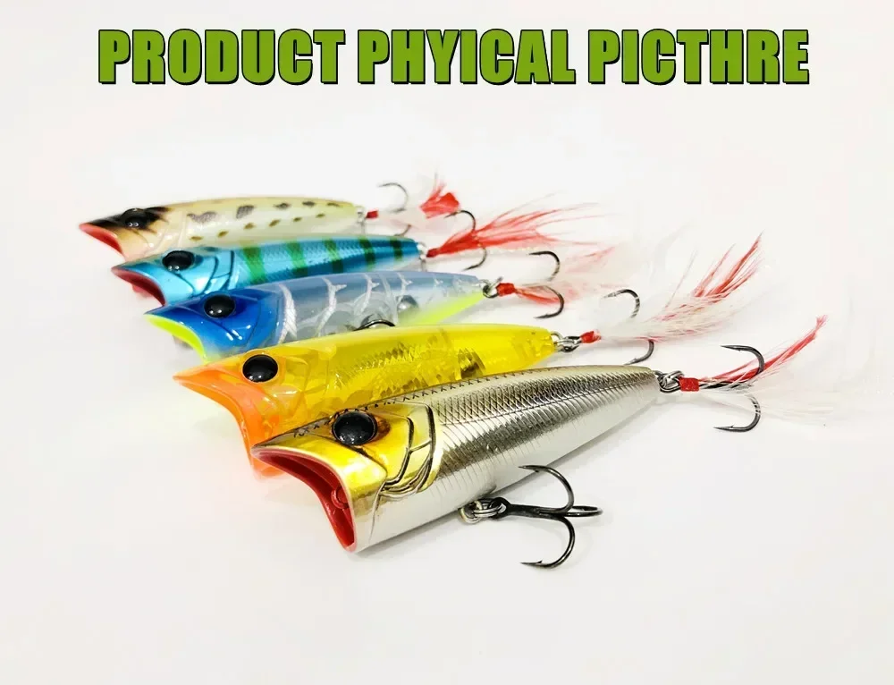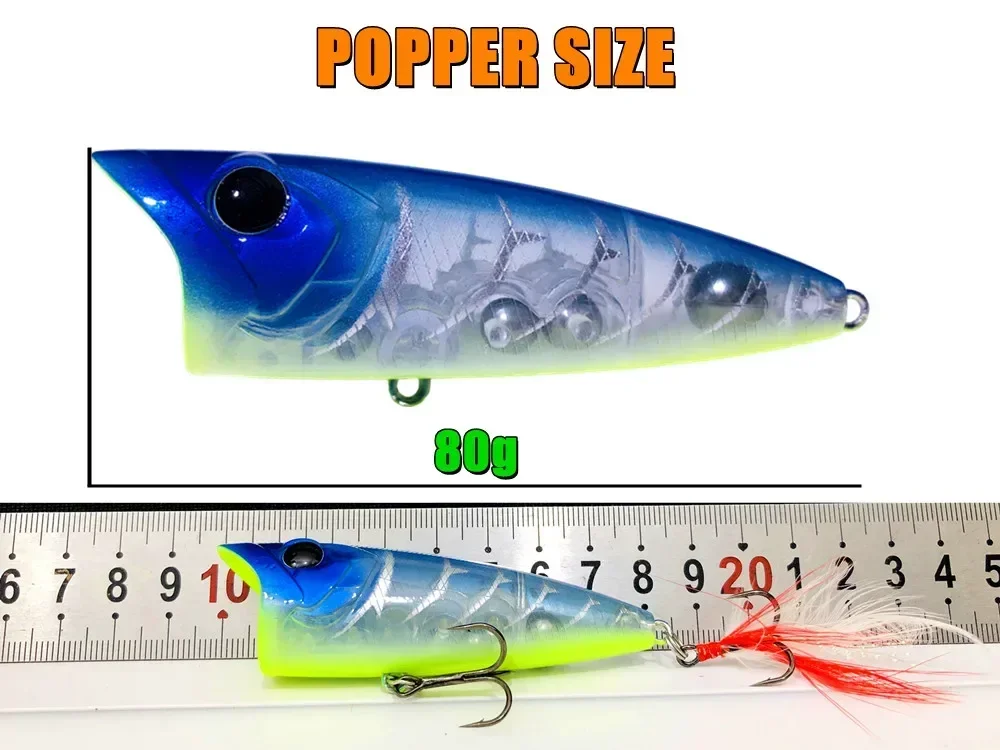 Señuelo de pesca Popper, 80mm, 16,5g, cebo duro Topwater para Lucio, modelo de superficie oscilante flotante de fundición larga