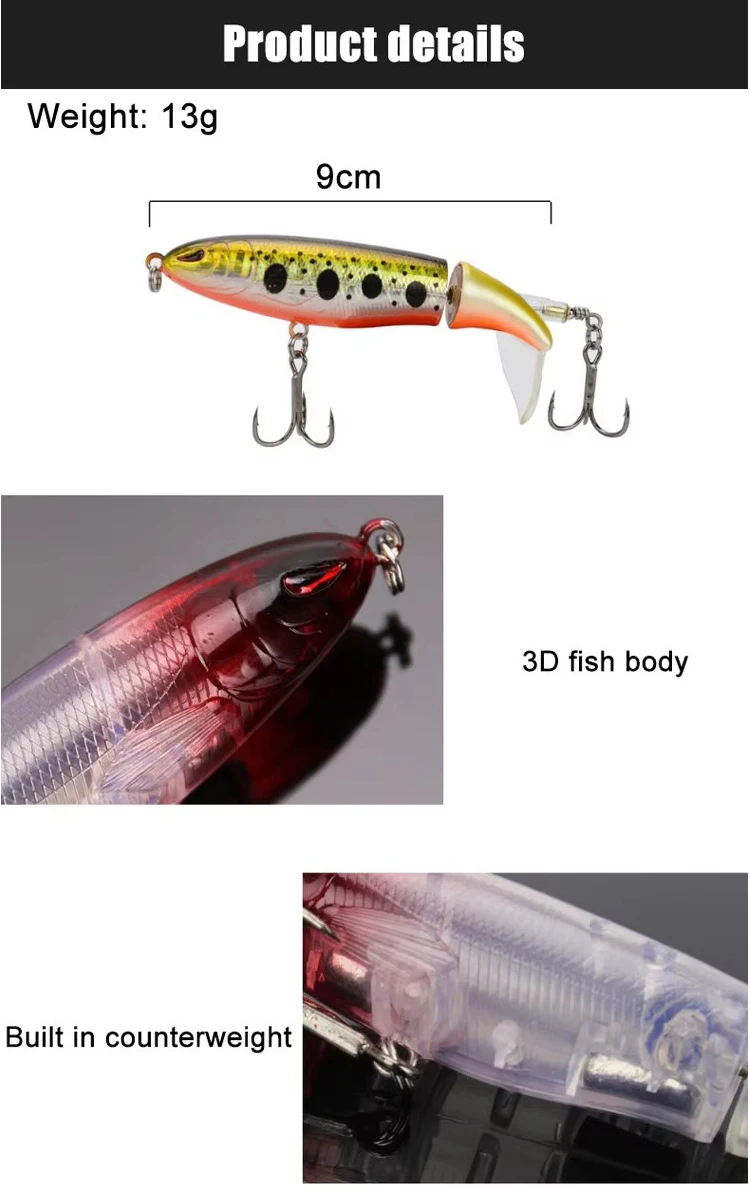 Este señuelo es único, nunca había visto uno igual. Su diseño innovador y detallado me llama mucho la atención, y aunque aún no lo he probado, la calidad parece prometedora. Tiene una forma y características que pueden hacer la diferencia en la pesca. Estoy deseando probarlo en el agua y ver cómo se comporta.