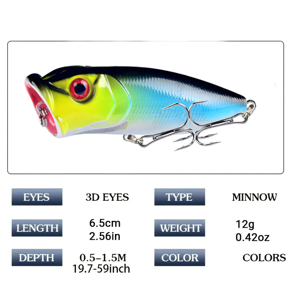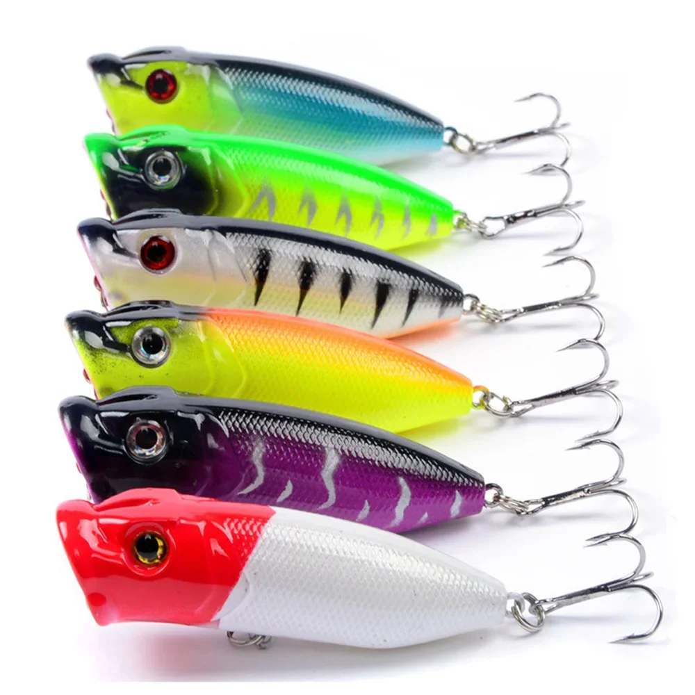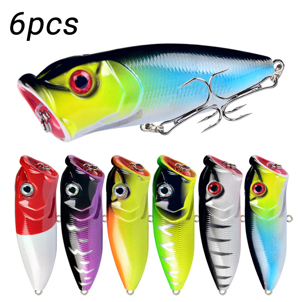 Señuelo de pesca Popper de alta calidad, cebo Artificial duro flotante, Crankbait Wobblers, aparejos de pesca de carpa, 6 uds.
