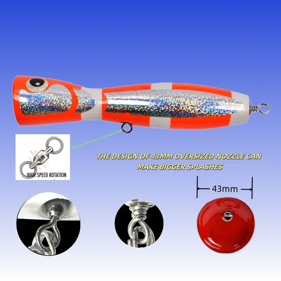 Señuelo de pesca Popper, cebo de superficie flotante, boca grande, agua salada, cebos duros, productos de pesca, 21,5 cm, 120g, 1 unidad