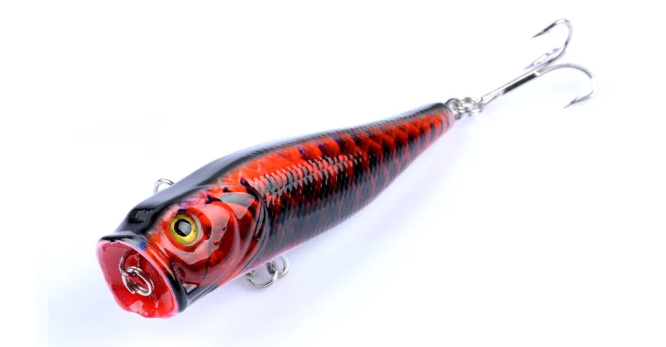 Señuelo de pesca Popper Topwater, 1 unidad, 9cm, 14,5g, cebo duro Artificial Wobbler de plástico 6 # Anzuelos Fly Carp Bass Pesca aparejos de pesca