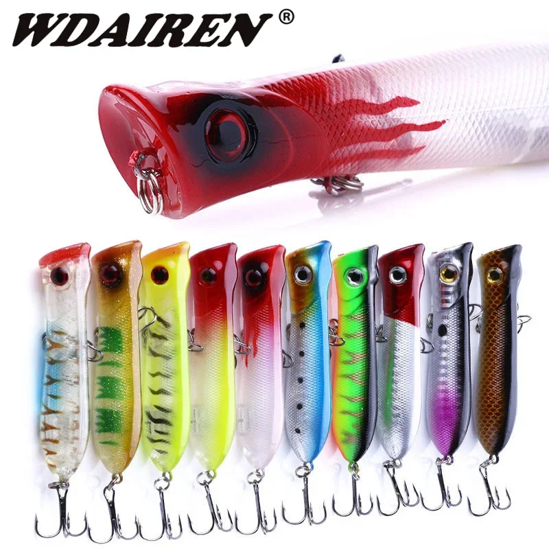 Señuelos de pesca Topwater Popper, 8cm, 11g, Wobblers flotantes, cebo duro Artificial para lubina, Lucio, Swimbaits, aparejos de pesca, 1 Uds.