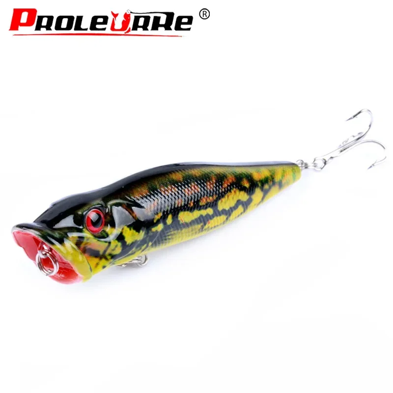 Señuelo de pesca Popper Wobbler, 9cm, 12g, Crankbait flotante con 6, 1 ud. # Ganchos cebo Artificial Poper Pesca carpa Lucio aparejos de Pesca