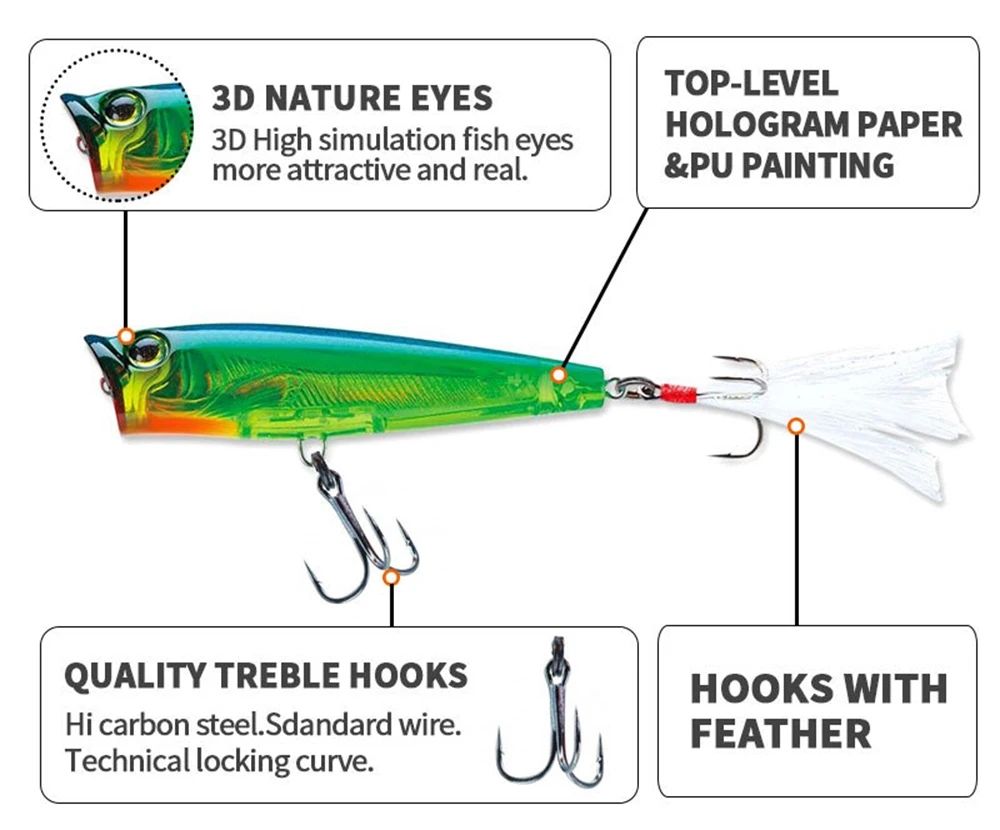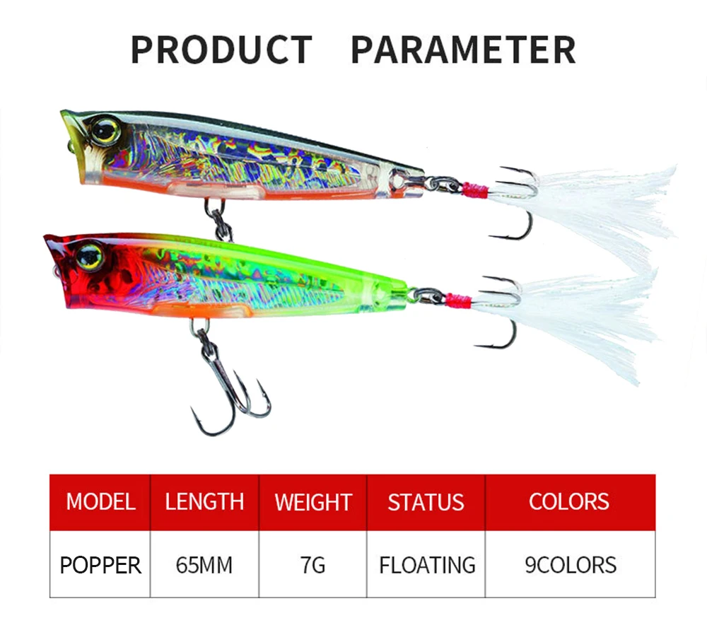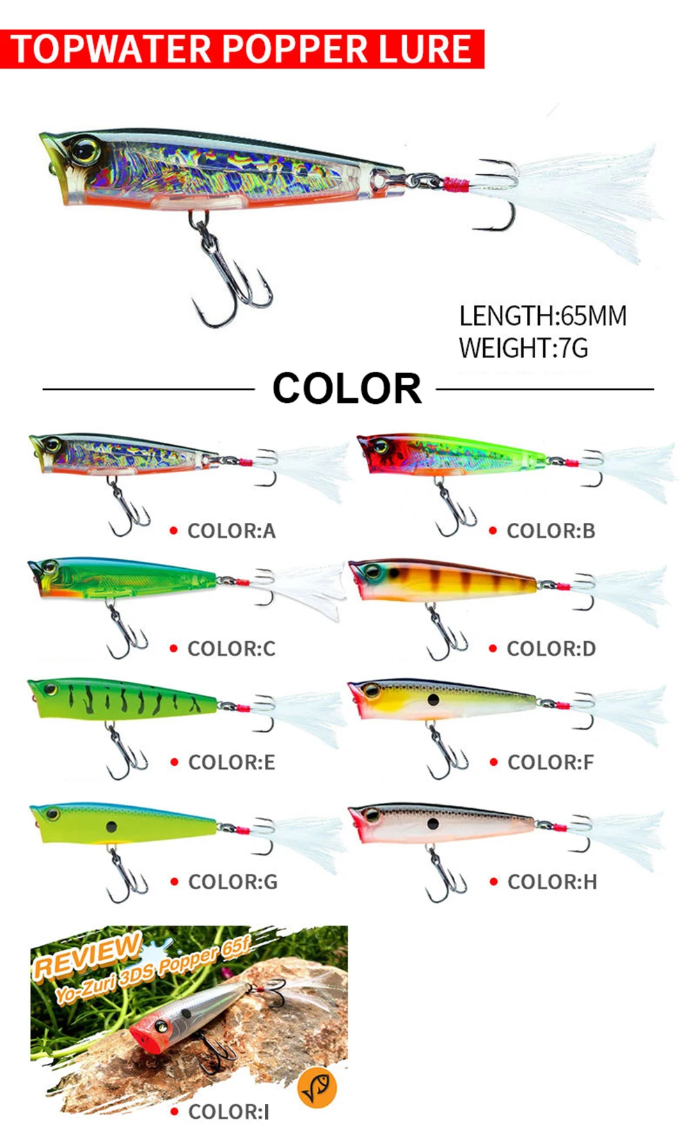 6,5 cm 7g señuelo de pesca Popper Wobbler señuelo de fundición larga flotante Topwater cebo duro Artificial Jerkbait para trucha lubina carpa cebo