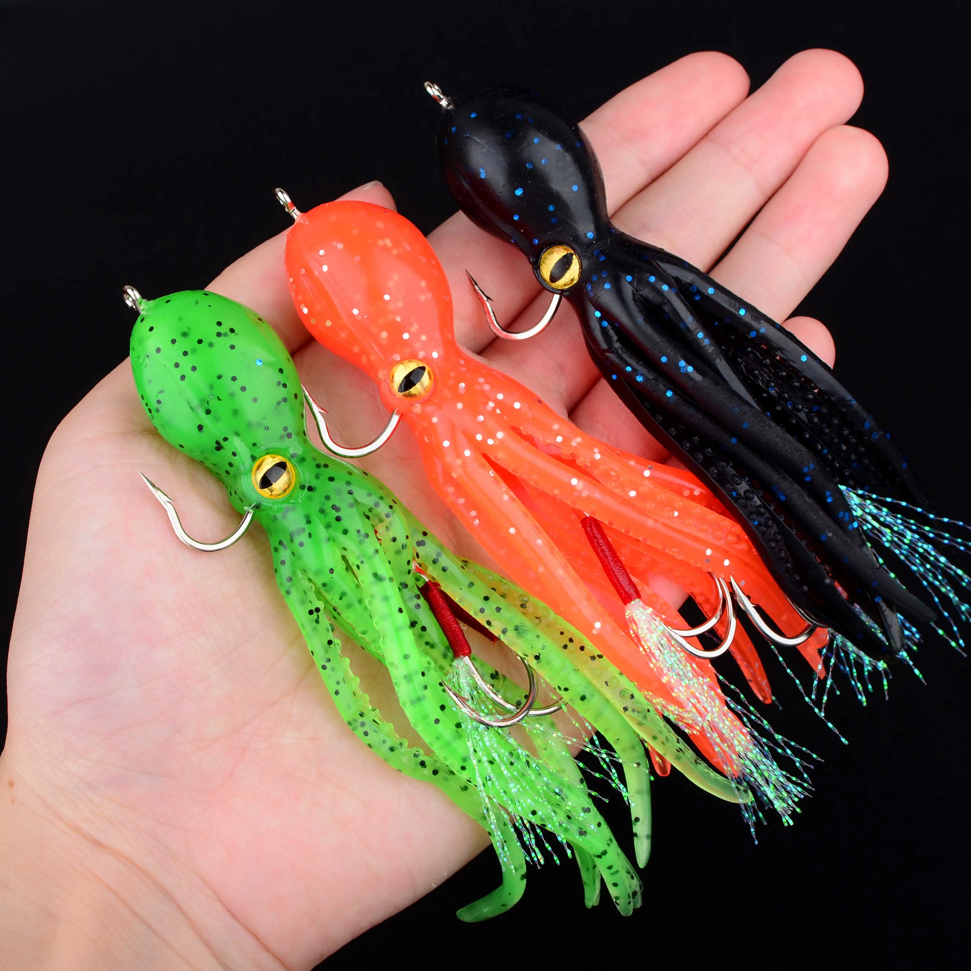 Señuelo de pesca de pulpo, anzuelo de aparejos, cebos blandos artificiales, Triple plantilla que se hunde, herramientas de pesca, 6 uds.