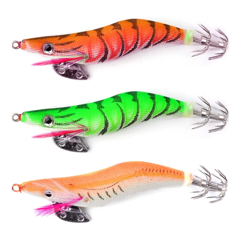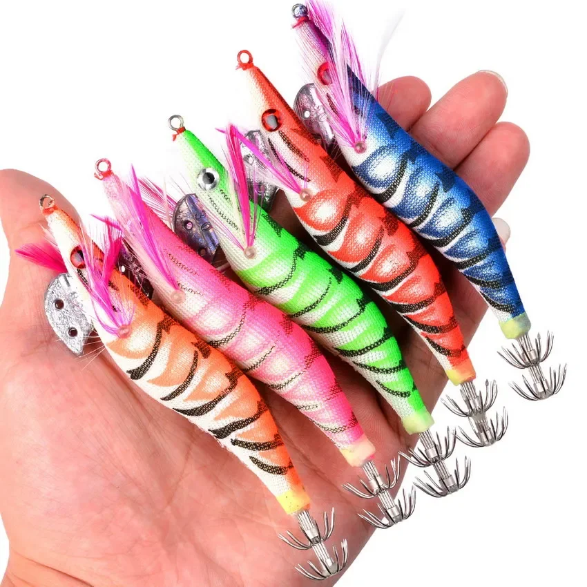 Señuelo de pesca que se hunde, anzuelo de calamar, camarones de madera, Señuelos de pesca artificiales, pulpo, sepia, camarones, cebo de pesca duro, 1 Uds.