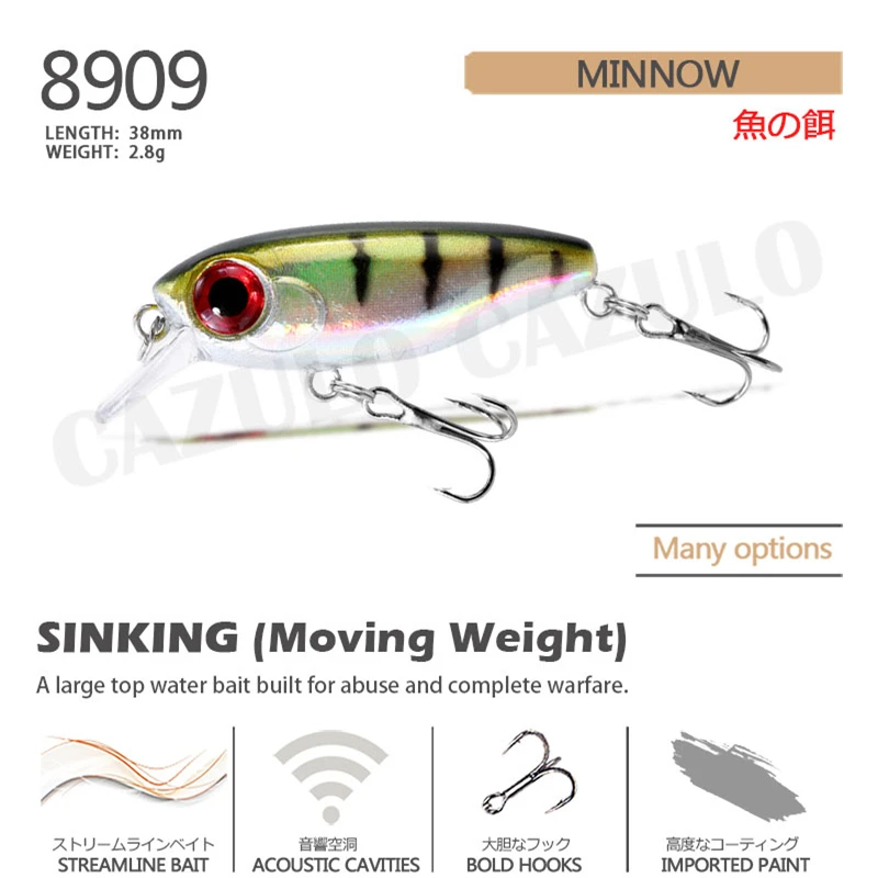 Accesorios De Pesca señuelo hundimiento Minnow Isca pesos artificiales 2,8G 38mm Accesorios De Pesca Wobblers Trolling carpa pez Leurre