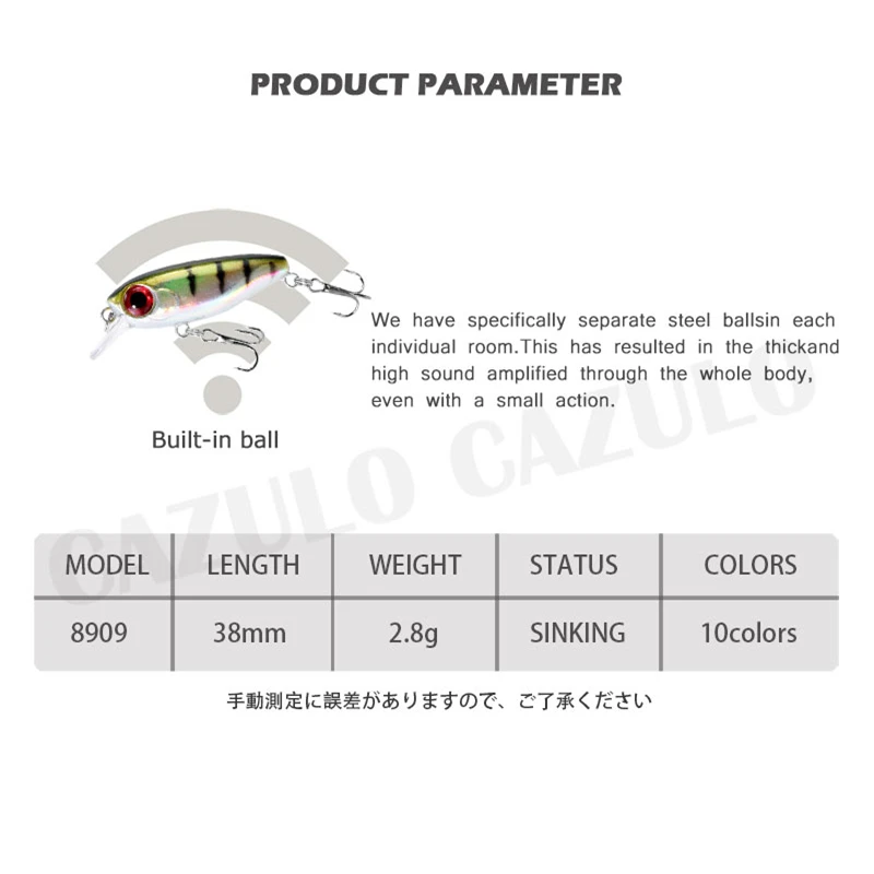 6. Bolas de metal: Bolas de acero inoxidable en el interior, para mantener el equilibrio del señuelo de pesca, para la mayor distancia de lanzamiento.