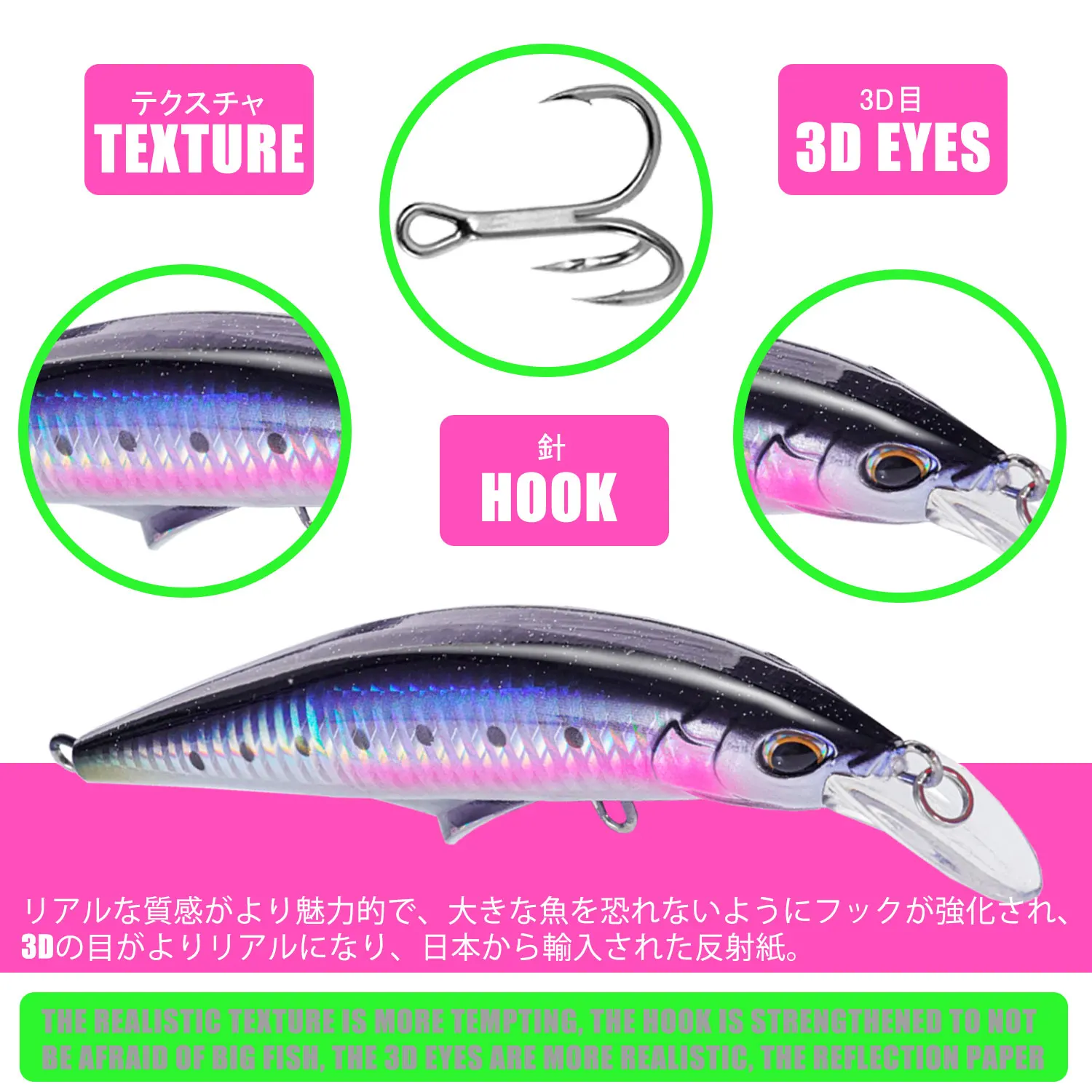 2. Piel de pez de simulación (láser): el diseño de piel de pez de simulación lo hace más atractivo para los peces grandes.