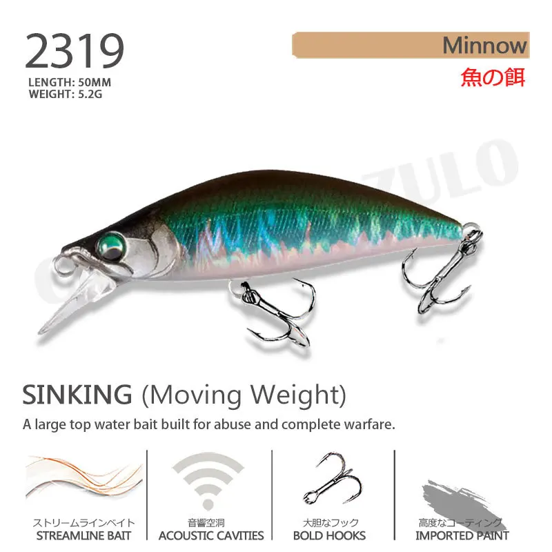 Stream Minnow hundimiento señuelo de pesca 50mm 5,2g accesorios de pesca Peche Carpe Leurre Micro cebos Isca Artificial Wobblers aparejos