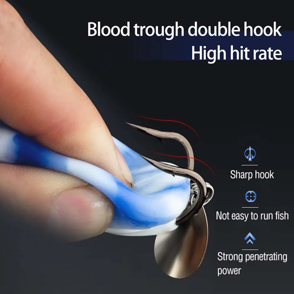 [Soft Lures]: Our frog lures are made of high-quality silicone, soft, delicate, bite-resistant, with a sharp tungsten steel hook, and its sharpness is 30% higher than ordinary hooks, which can easily pierce and catch all kinds of fish.