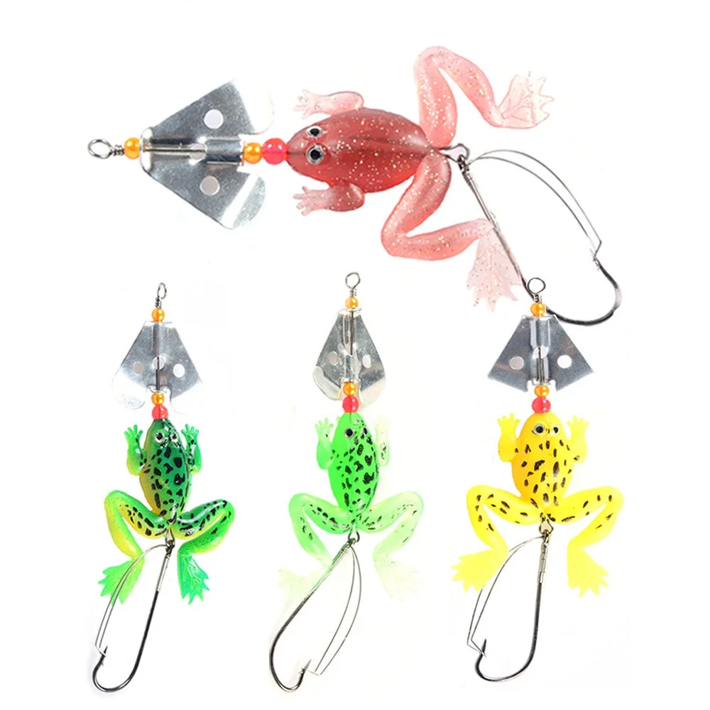1-4 Uds./lote señuelo de pesca de rana 9cm/6,2g cebo de silicona suave de goma con gancho Wobblers artificiales Spinner cuchara señuelos aparejos de pesca