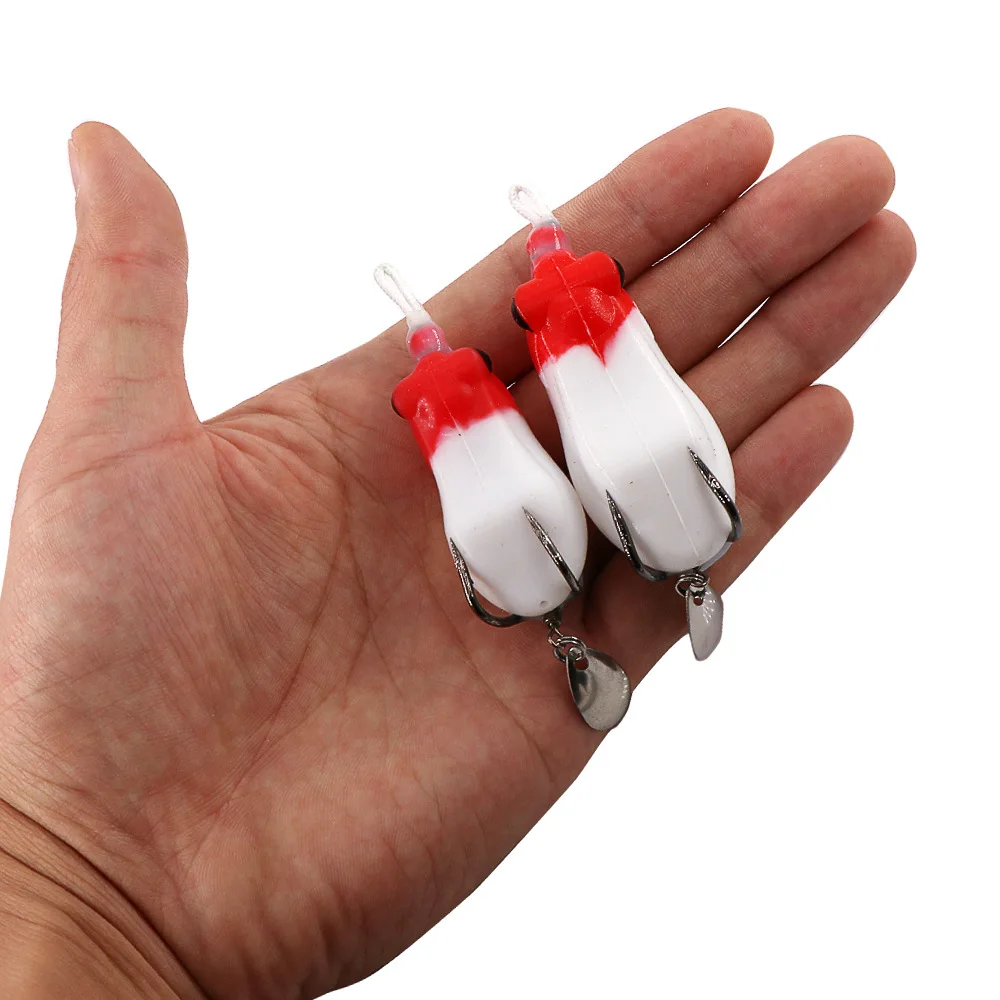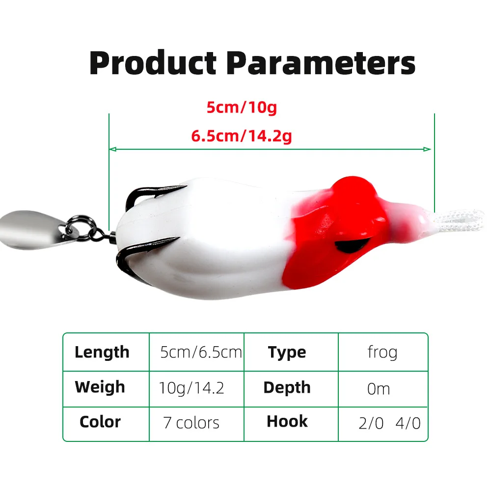1. El cuerpo de la rana adopta tecnología de recubrimiento multicapa, material de goma, que es más suave y diseño de ojo de rana 3D llamativo y realista, que es muy atractivo para los peces objetivo.