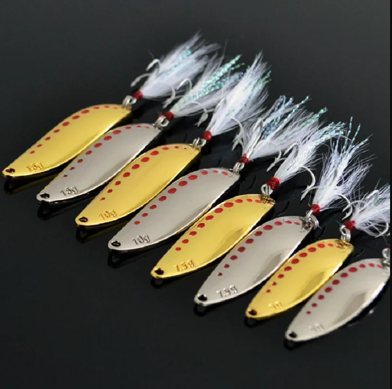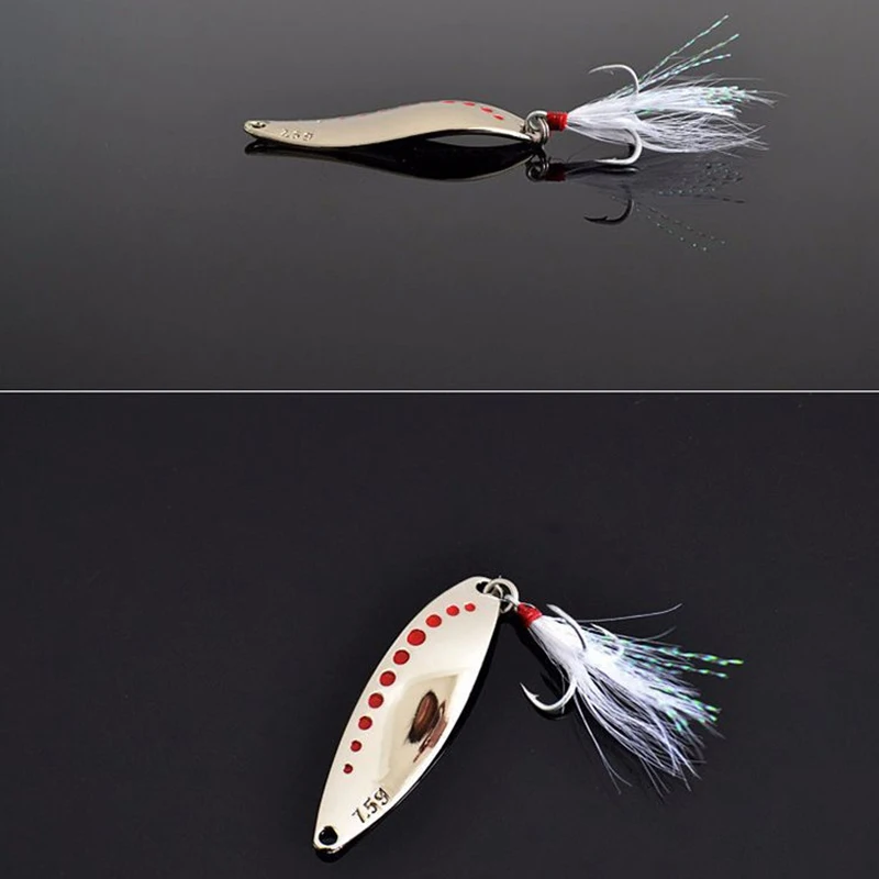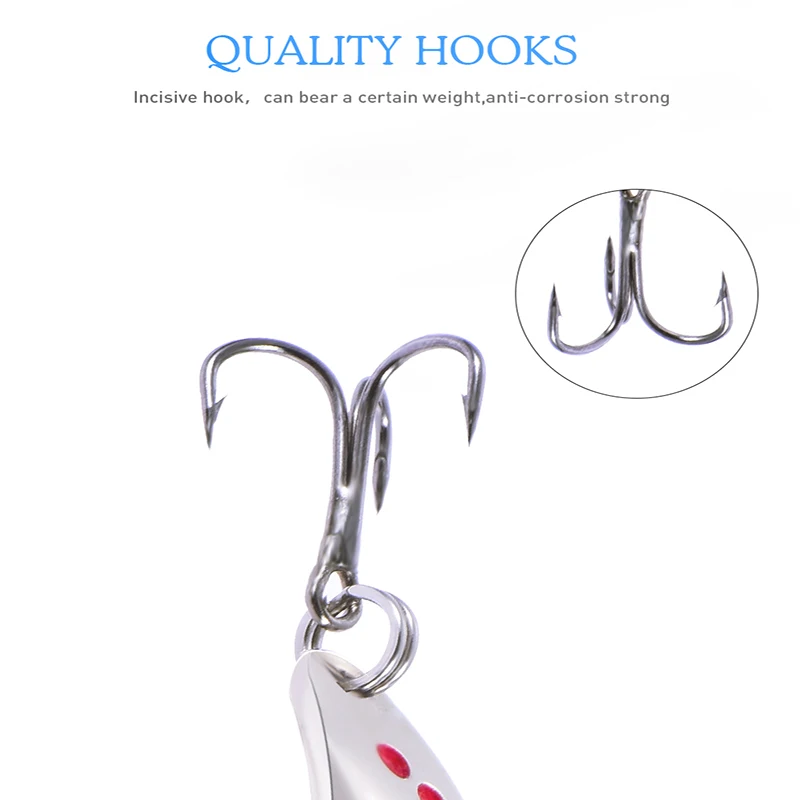 Característica:Tipo de señuelo: cebo de metal con cuchara de sanguijuelaPeso: 2,5G/3,5g/5g/7,5g/10g/15g/20gLongitud: 55mmMaterial: Metal/aleación de zincGancho: 1 gancho triple afiladoEl paquete incluye:1*1 señuelo de metal con cuchara