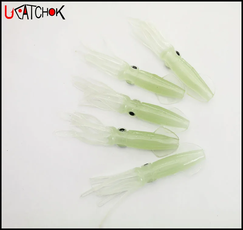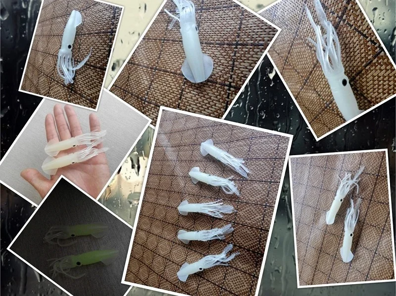 Señuelo de pesca de sílice, cebo artificial luminoso de imitación de pulpo falso, 11cm y 8g, 10 unidades