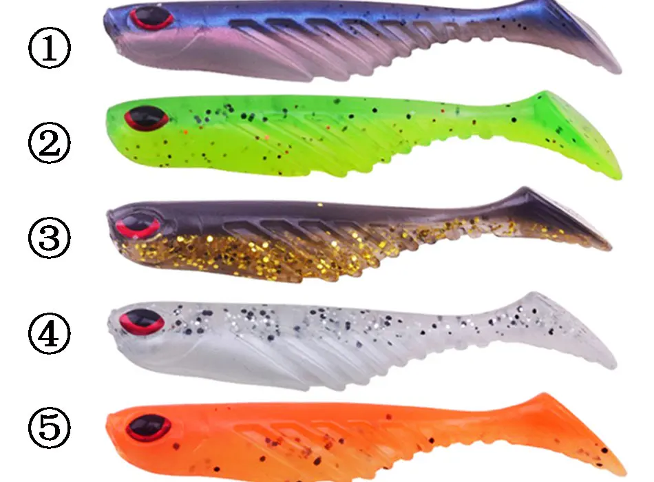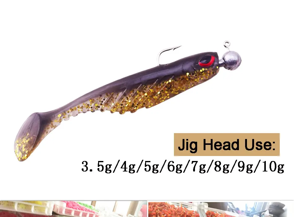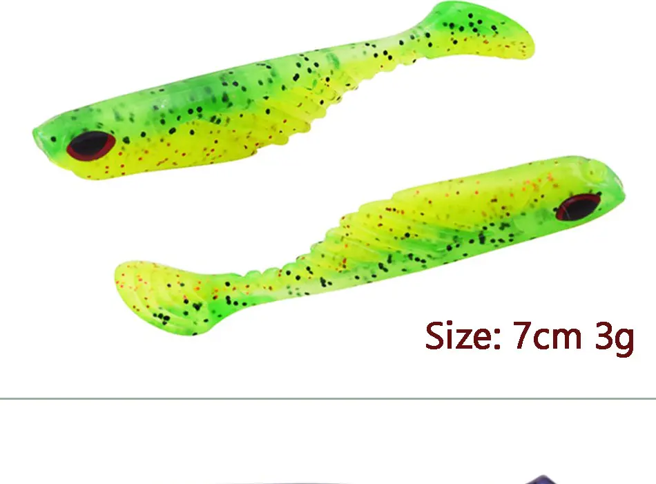 Señuelo de pesca de silicona de 5 piezas, 70cm, 3g, cabeza de plantilla, Wobblers Swimbait, cebo Artificial suave, cola de paleta, aparejos de pesca de carpa