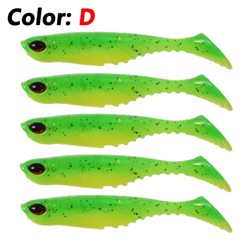 5 unids/lote ojos 3D cebo suave de silicona 7cm 2,8g gusano de cola en T plantilla Wobblers señuelo de pesca cebos de goma artificiales Shad para aparejos de lubina