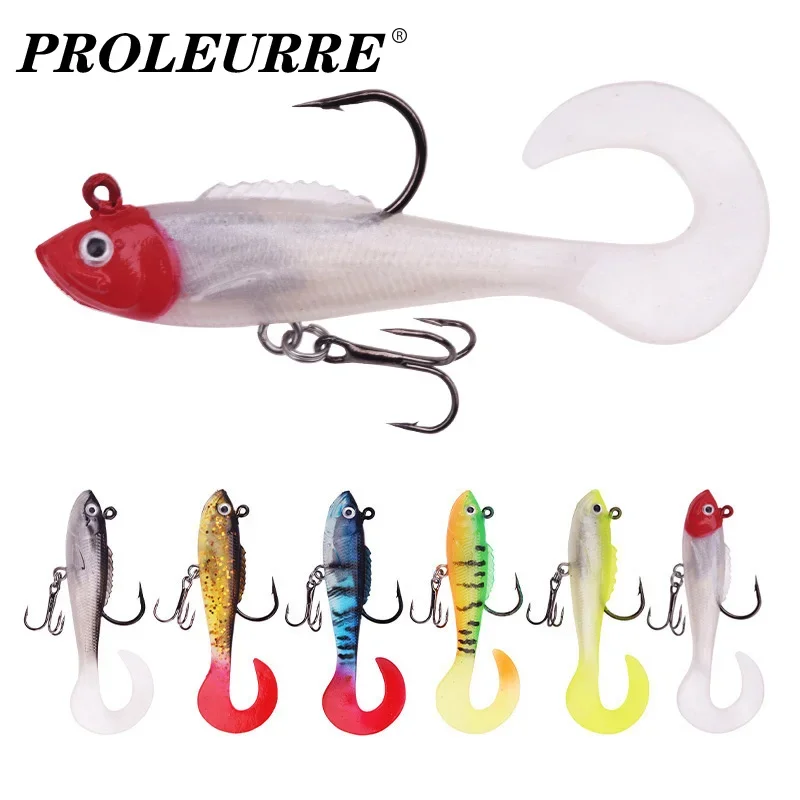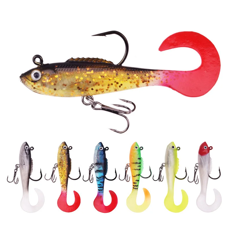 1 Uds. De silicona Jigging Wobblers cebo suave 60mm 4g cebos artificiales para lubina carpa Jig ganchos cola Swimbait Pesca aparejos de pesca