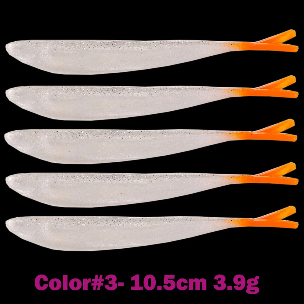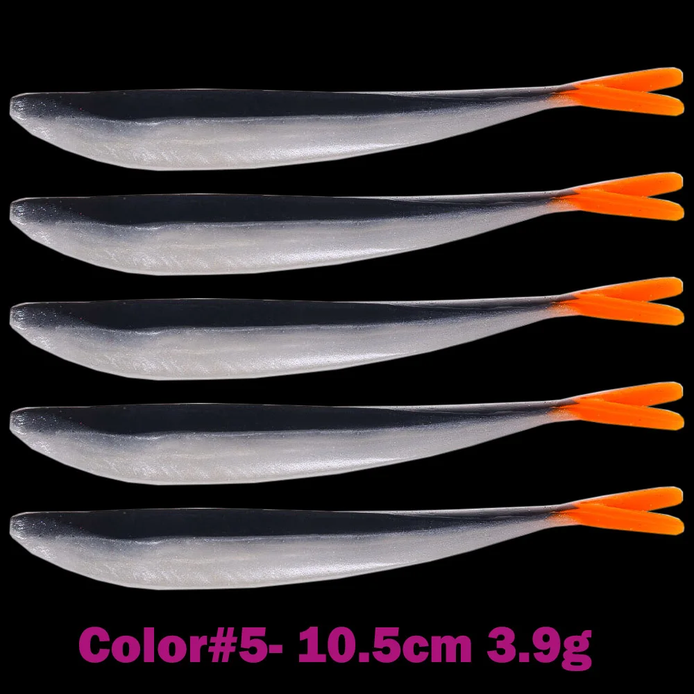 Señuelo de pesca de silicona suave, 5 uds., 10cm, 3,9g, pececillo, gusanos de agua dulce y salada, Wobblers, Walleye, cebo Artificial, aparejos de lubina, plantillas