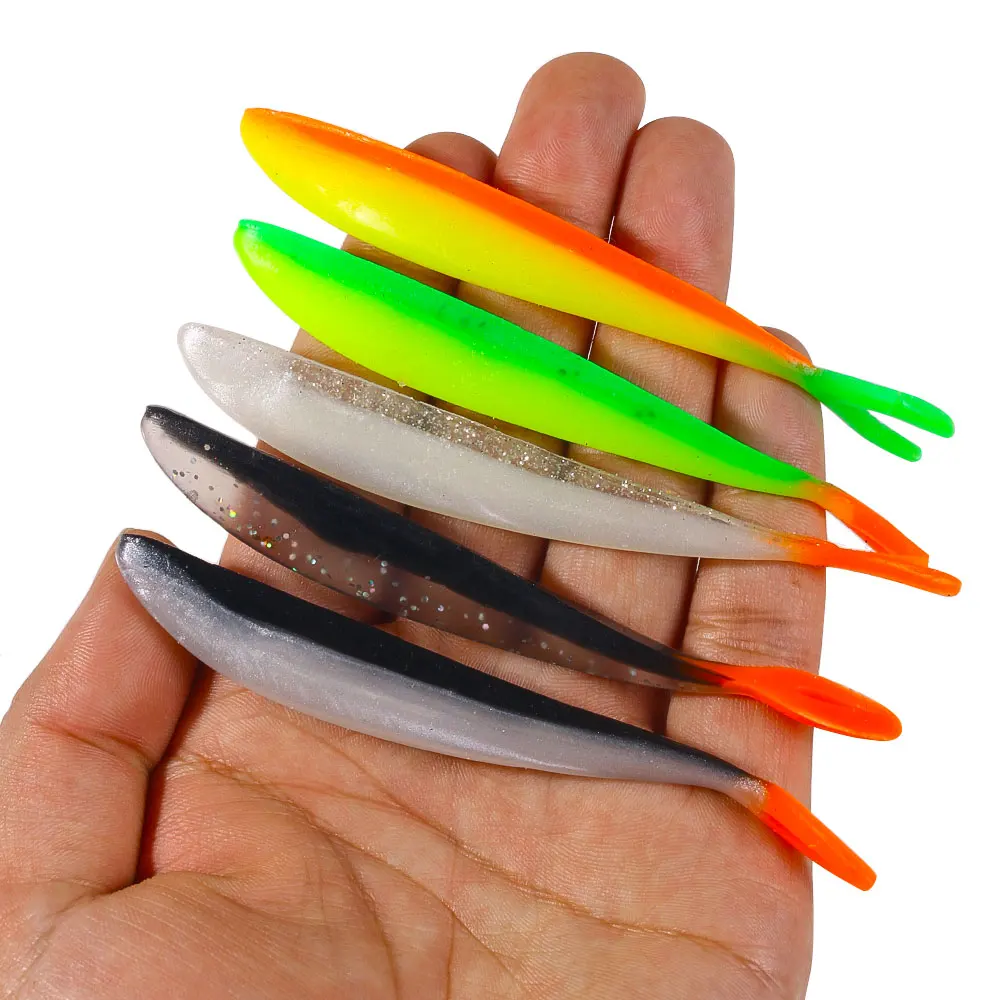 Señuelo de pesca de silicona suave, cebo Artificial de 5 piezas, 10cm, 3,9g, para pececillos, gusanos de agua dulce, Wobblers, Walleye, aparejos de lubina