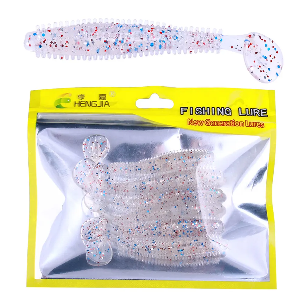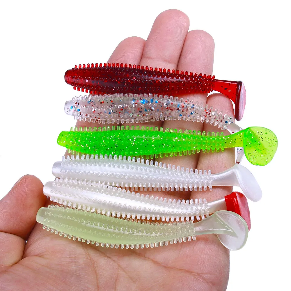Señuelo de pesca de silicona suave con partículas, cebos de gusanos, Swimbaits artificiales para aparejos de carpa, lubina, 6 unidades por lote