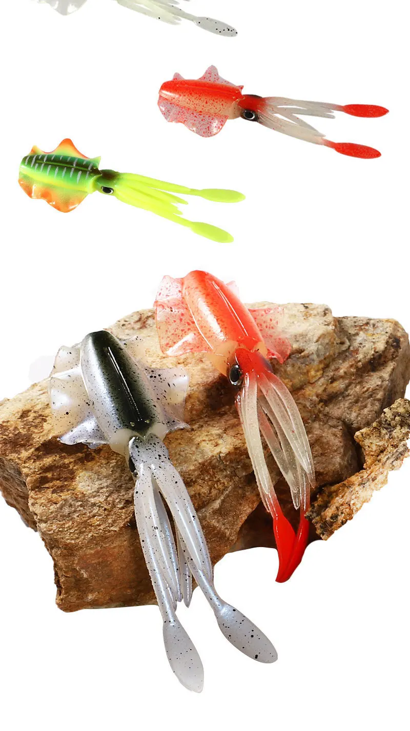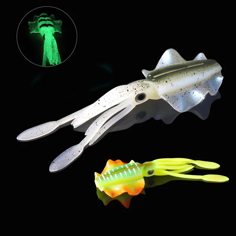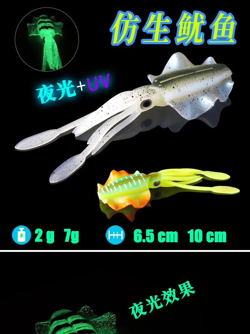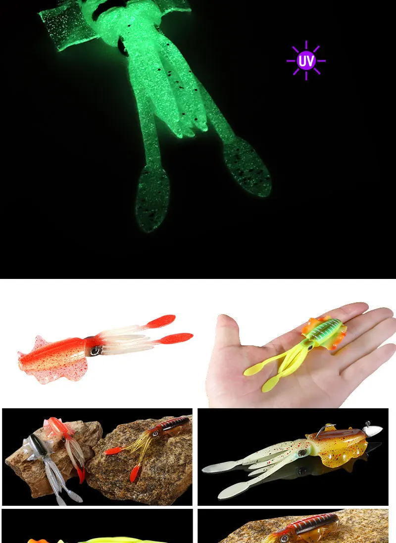Señuelo de pesca simulación de calamar cebo suave 6,5 cm 10 cm brillo UV manga pescado 2g 7g señuelos artificiales Jig Head cebos 1 pieza venta