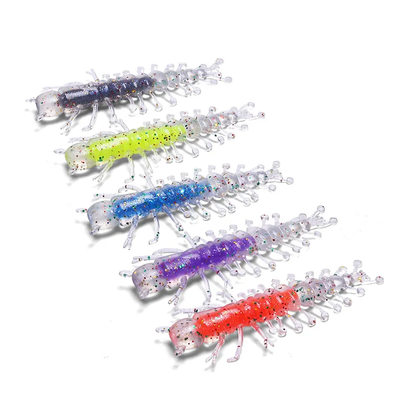 Señuelo de pesca simulación ciempiés cebo blando 1,8g 6cm PVC + TPR señuelos artificiales flotantes con lentejuelas láser lote 5 piezas VENTA
