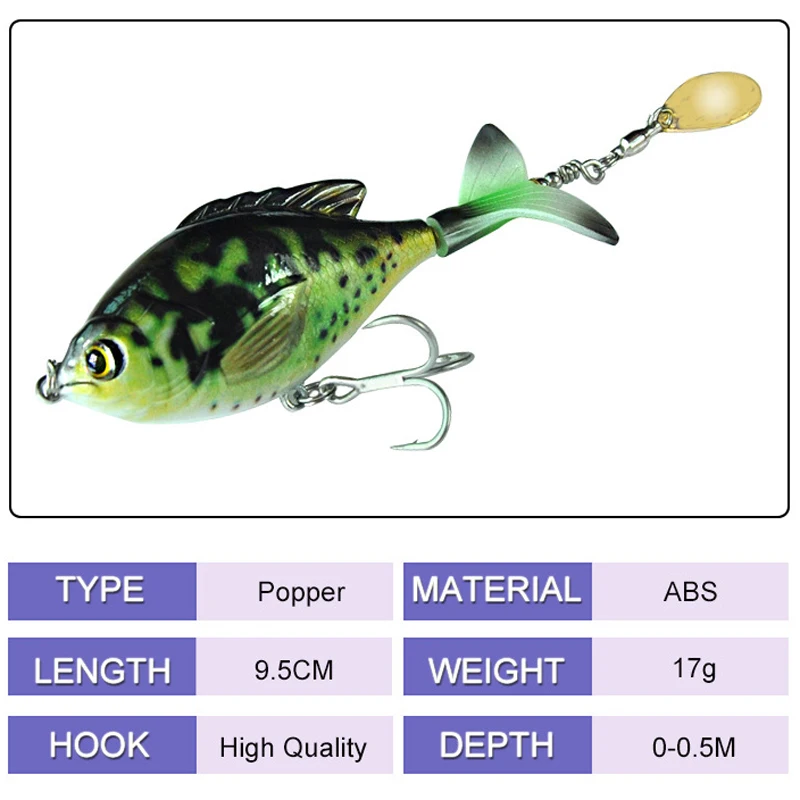 Señuelo de pesca de simulación giratorio, material de pesca, accesorios de superficie de agua, 5 colores, 9,5 cm/17g