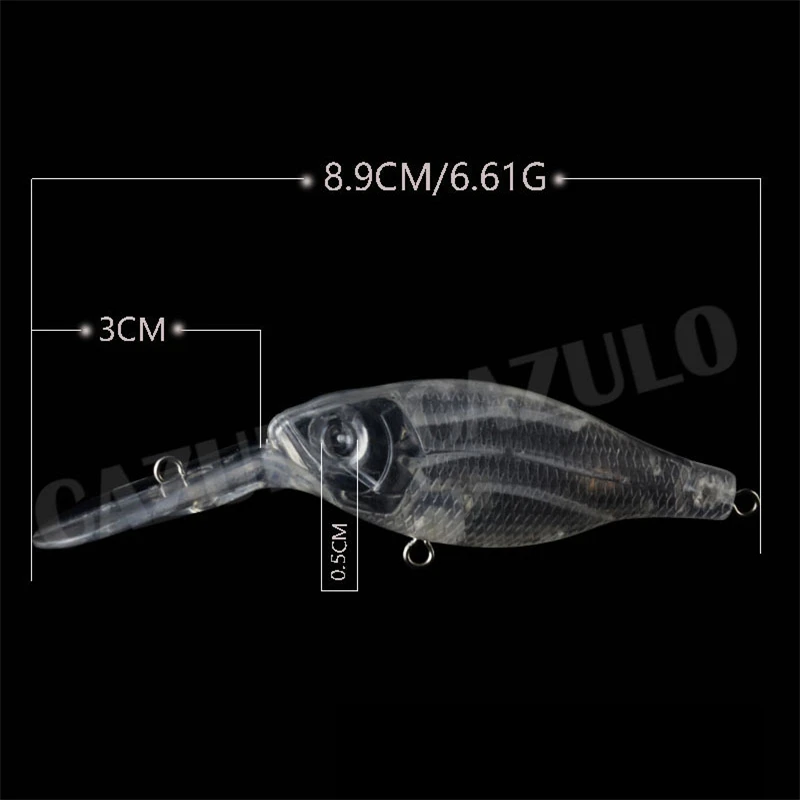 Accesorios de Pesca señuelo sin pintar Minnow 6,6g 89mm flotante Diy ABS transparente cebo Pesca equipo Pike Leurre brocher Angeln