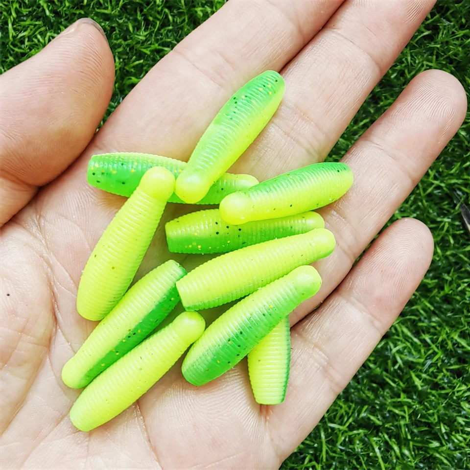 Señuelo de pesca suave, 10 Uds., 30mm, 1,05g, larvas, cebos de gusano, abeja, Pupa, patatas, larva Artificial para pesca de lubina rosa