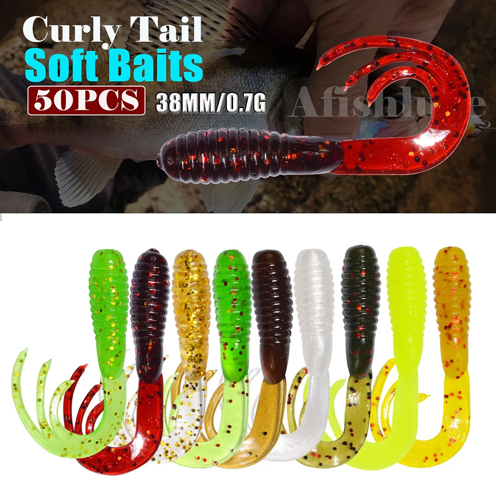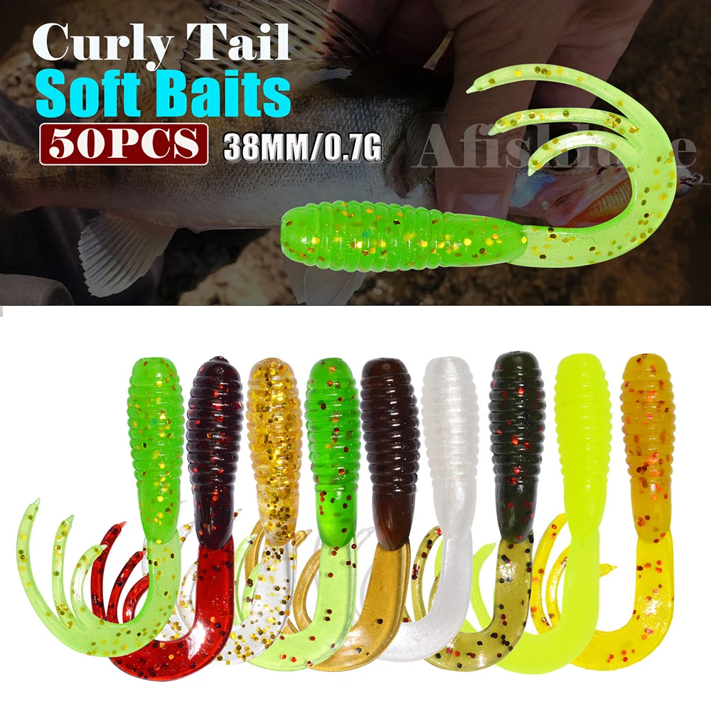 Señuelo de pesca suave de 50 piezas, agua salada, 38mm, 0,7g, cebo de plástico de goma Multicolor de alta calidad, juego de Señuelos de Pesca artificiales