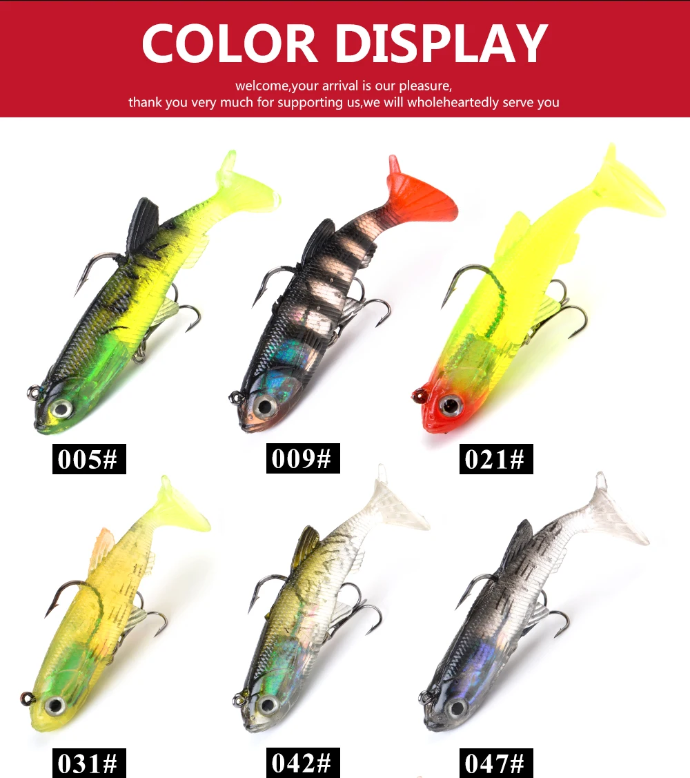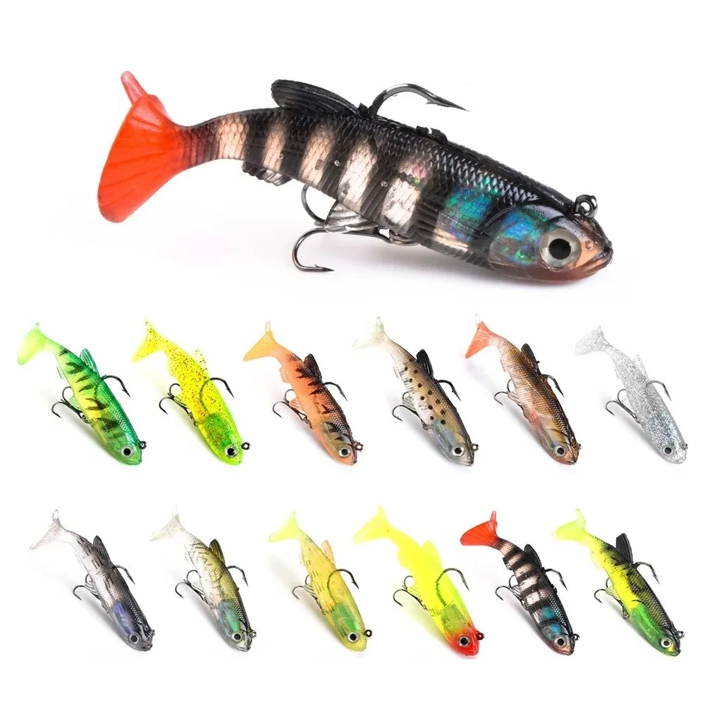 Señuelo de pesca suave con anzuelos triples, 8-10CM, 15g, 24,5g, ojos 3D, cebo Artificial de silicona, aparejos de pesca Swimbait, 1 Uds.